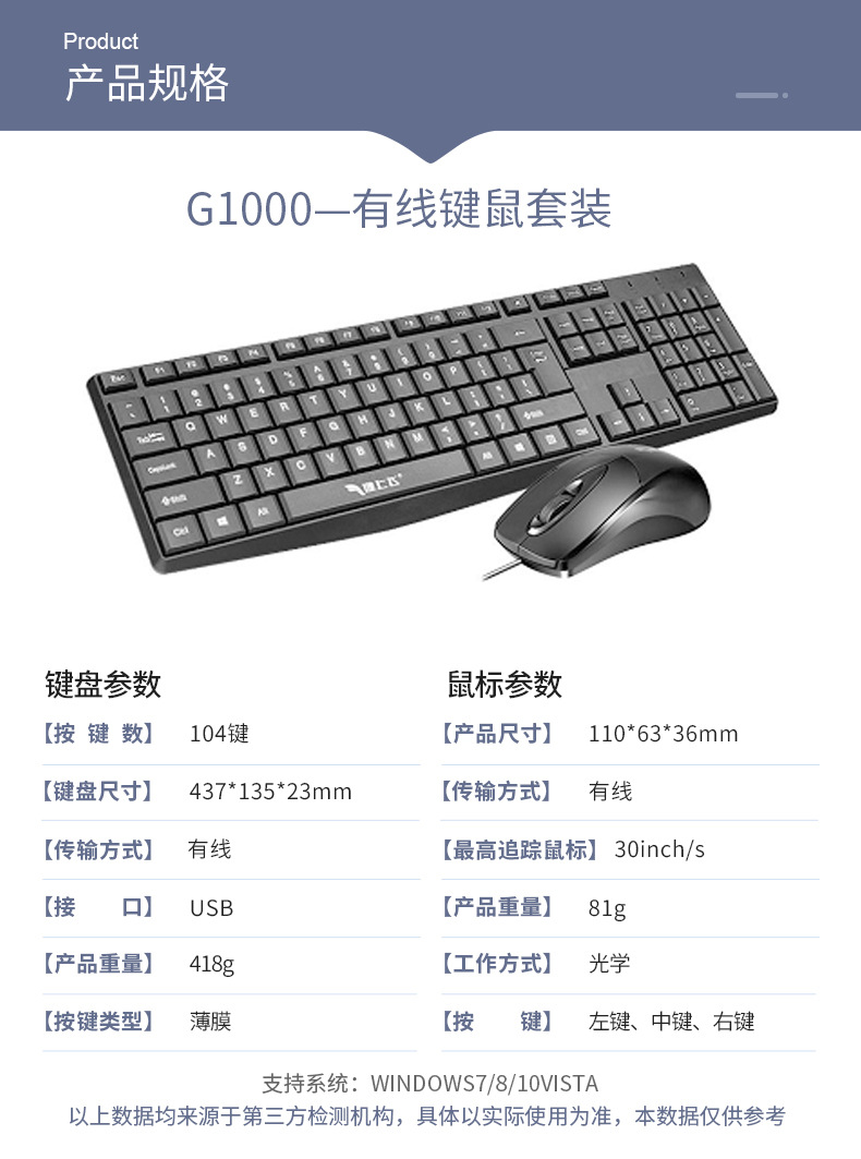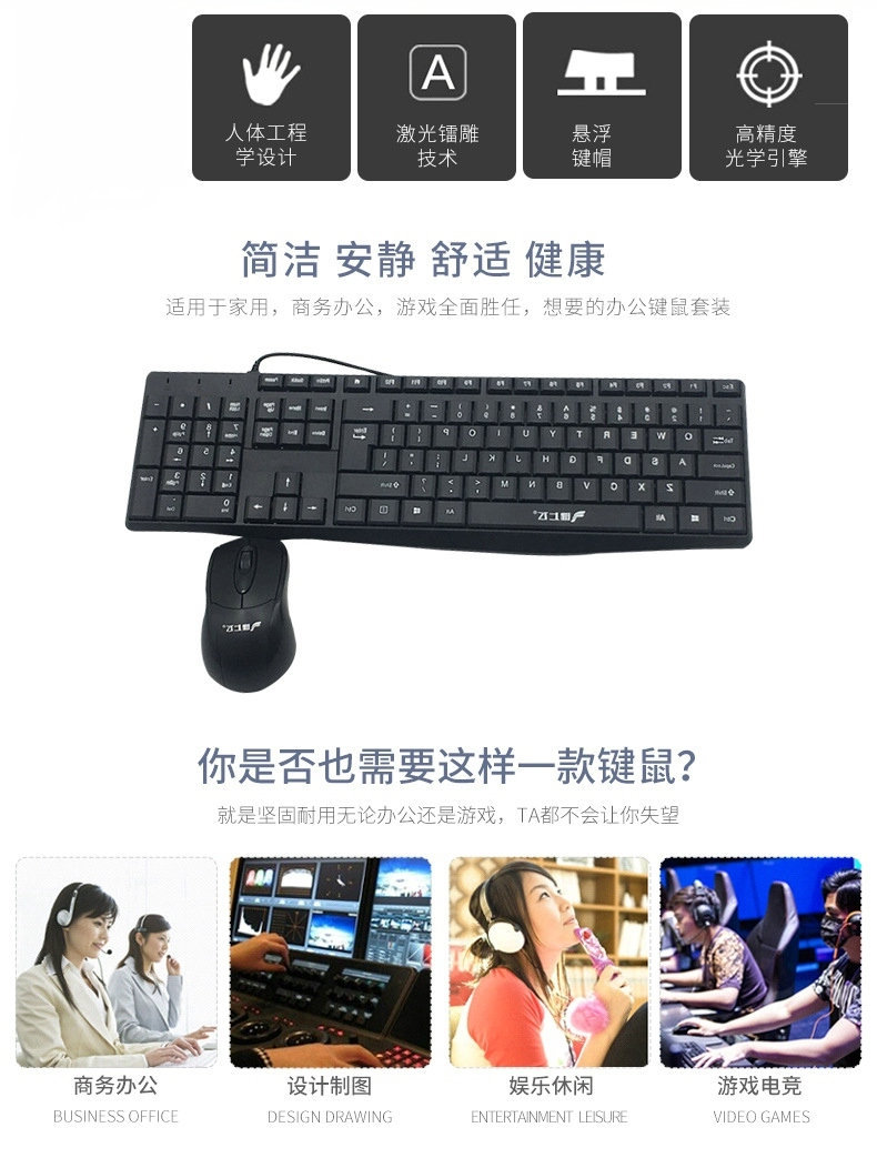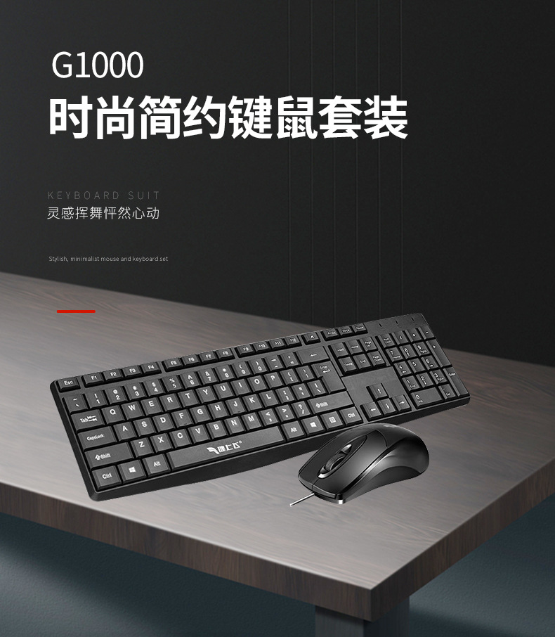 키 G1000 키보드 및 마우스 세트 데스크탑 컴퓨터 사무실 키보드 USB 포트 유선 마우스 키보드 세트 도매