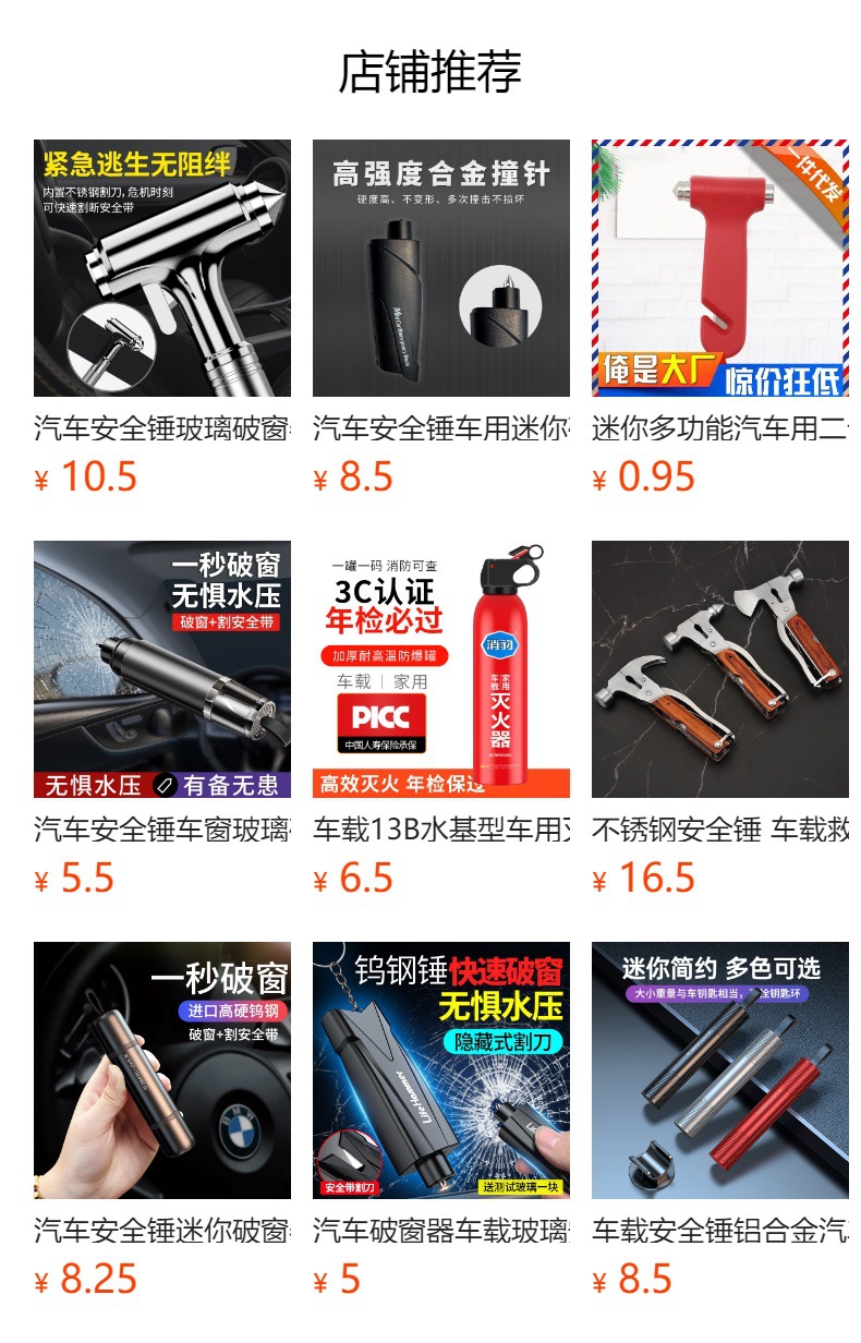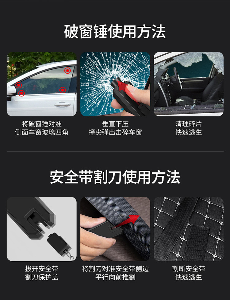 汽车安全锤迷你安全锤破汽车破窗器逃生多功能安全锤四合一安全锤