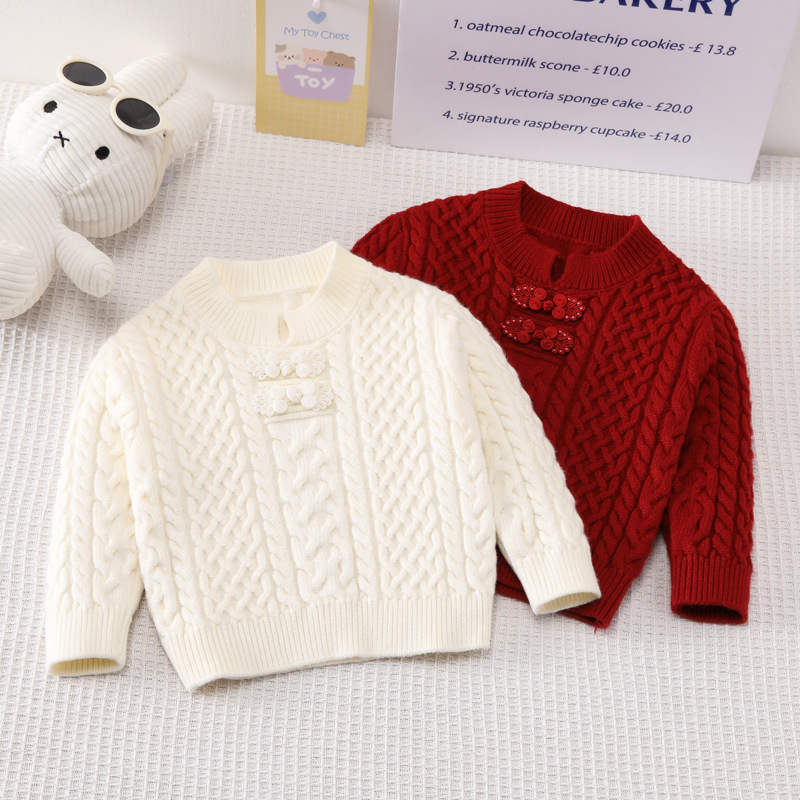 2026년 니트 스웨터 초봄 여아용 단색 따뜻한 스웨터 트위스트 스타일 아동용 두꺼운 스웨터 중소형 어린이 여아용스토어 가기
