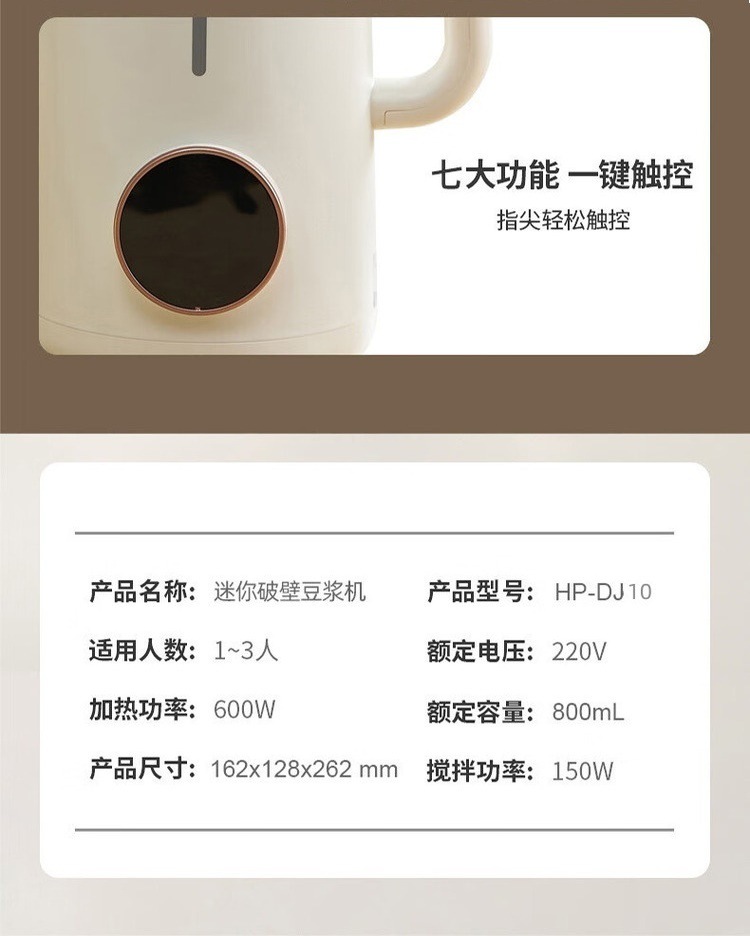 (HAIPAI 하이브랜드) 미니 벽파쇄 두유기 HP-DJ10 (아이보리 화이트)