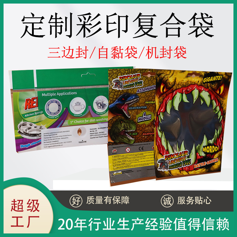 삼면 밀봉 OPP 가방 맞춤형 플라스틱 기계 밀봉 가방 복합 컬러 가방 장난감 포장 맞춤형 식품 포장 가방스토어 가기