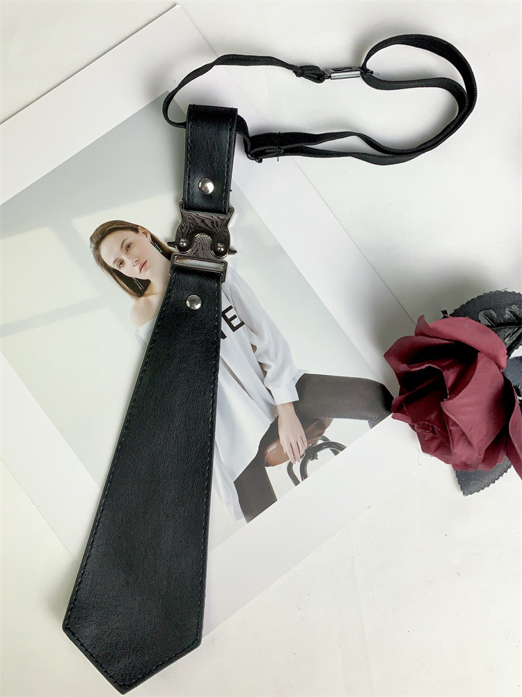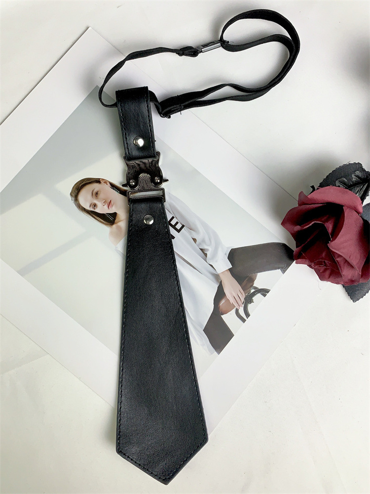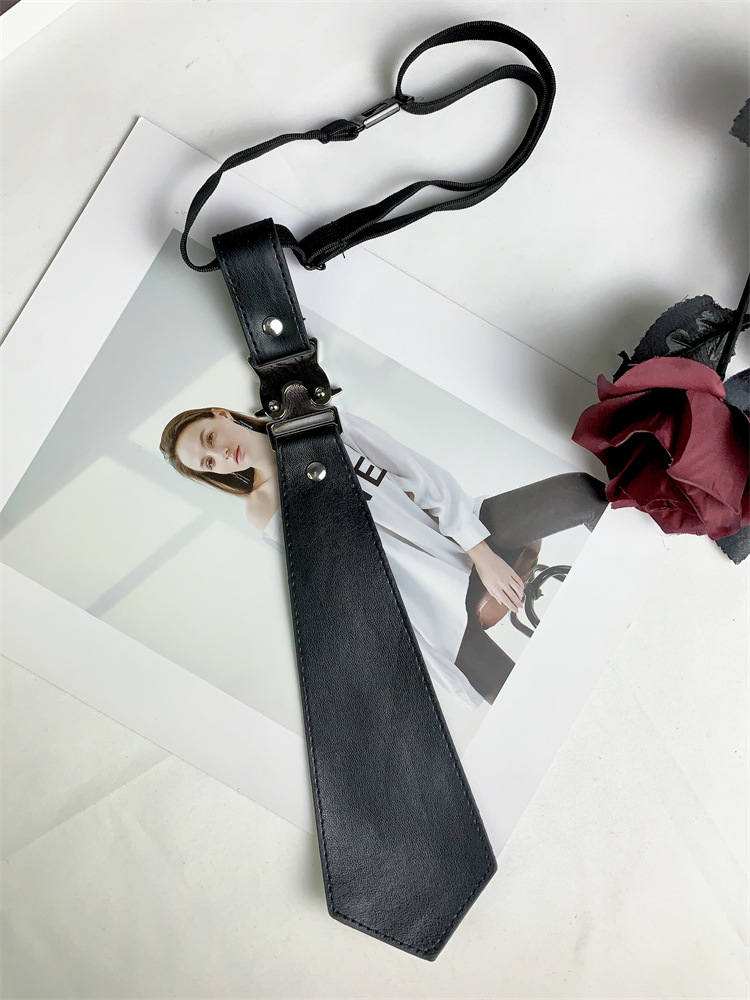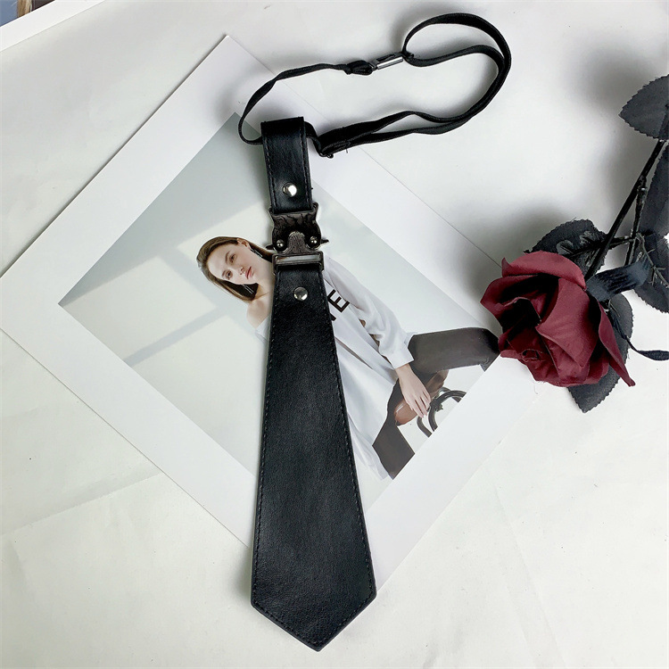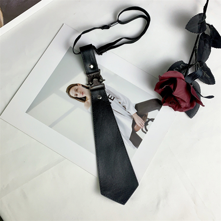 메탈릭 블랙 솔리드 컬러 넥타이 고 부가가치 프리 스타일 스파이스 걸스 캐주얼 올 매치 미국 패션 일본-한국 스타일 콜로케이션