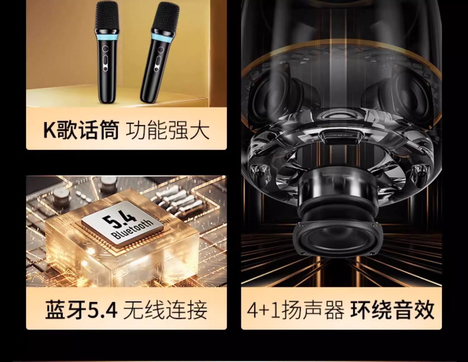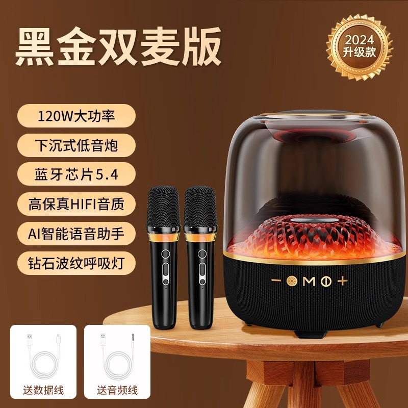 • [글레이즈드 블랙 골드 컬렉터스 에디션] 듀얼 무선 마이크 +360°스테레오 공간 오디오 + 5가지 리듬 조명 효과