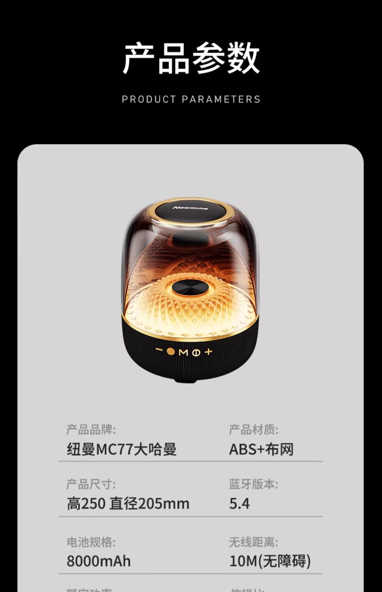 뉴먼 MC77 무선 블루투스 스피커 홈 컴퓨터 데스크톱 서브 우퍼 야외 오디오 유리 분위기 조명 효과