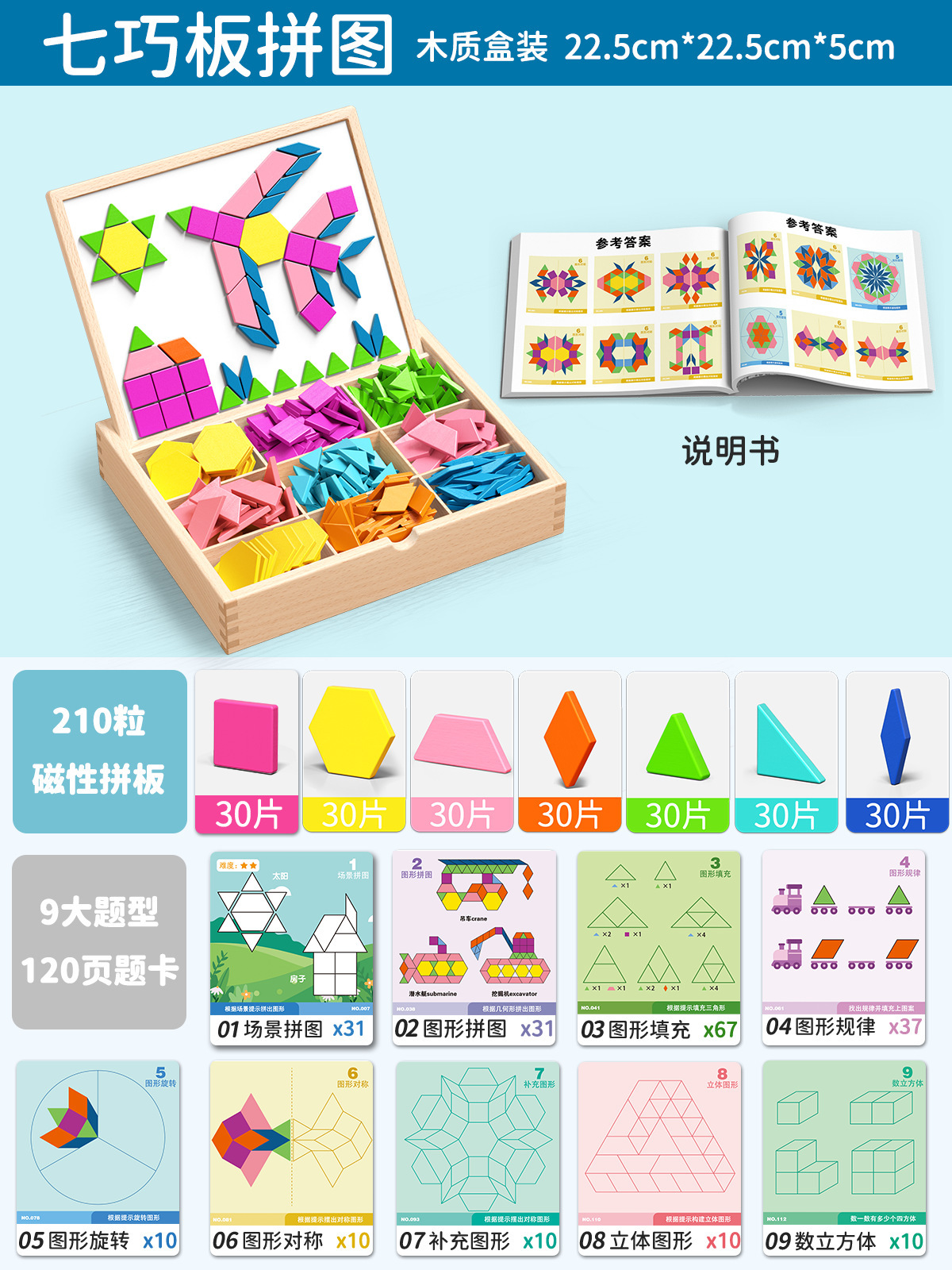 어린이 자기 탕람 직소 퍼즐 기하학적 빌딩 블록 3 ~ 6 년 된 지능 Mindfulness 재미있는 장난감스토어 가기