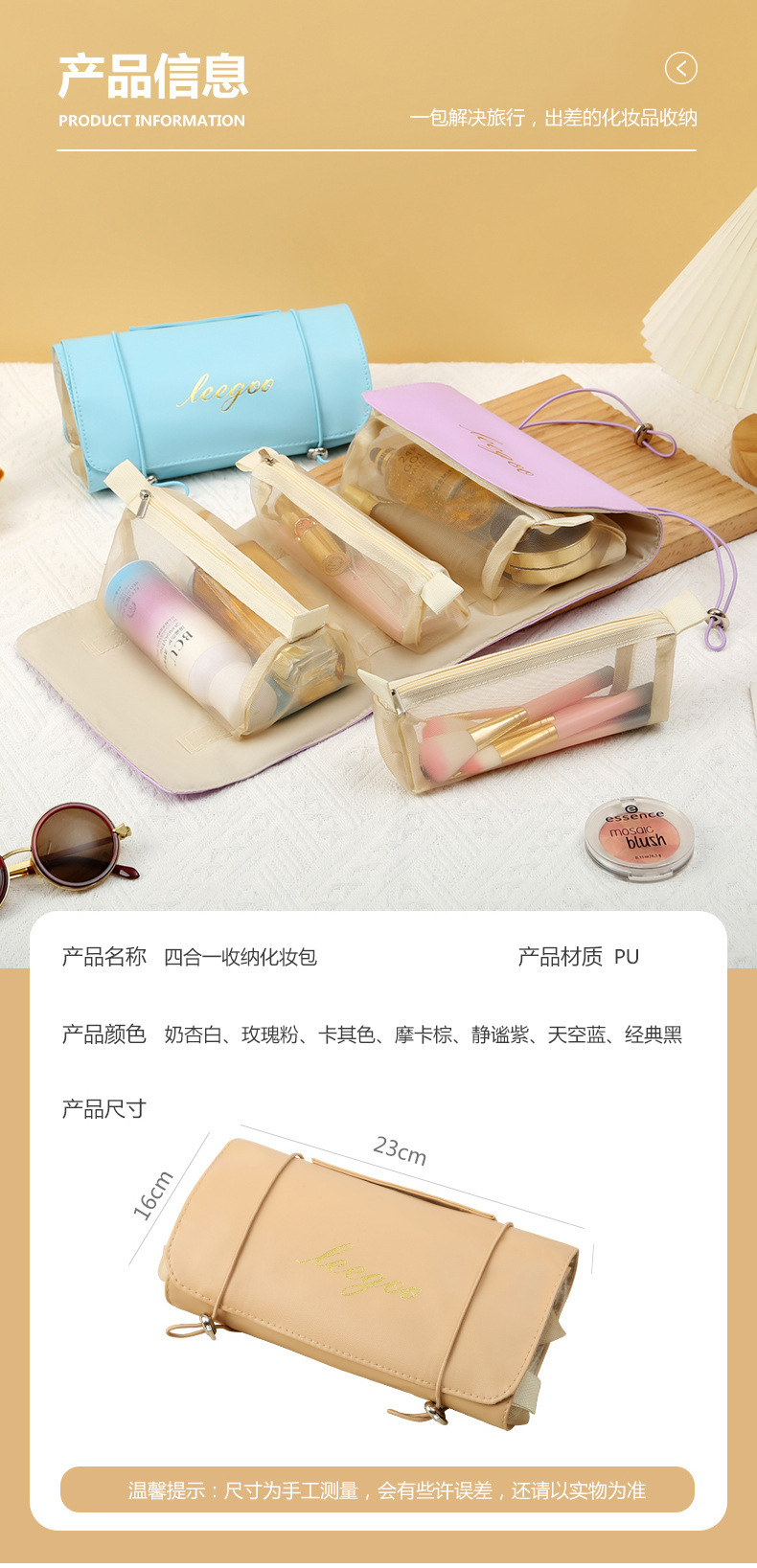 PU 4-in -1 화장품 가방 분리 방수 다기능 여행 워시 백 여성 접이식 화장품 보관 가방스토어 가기