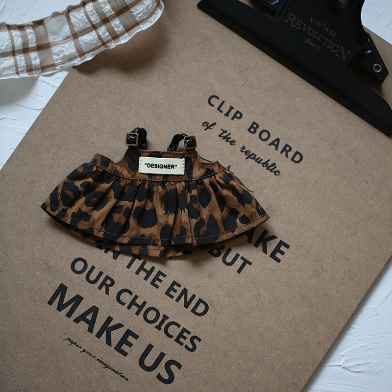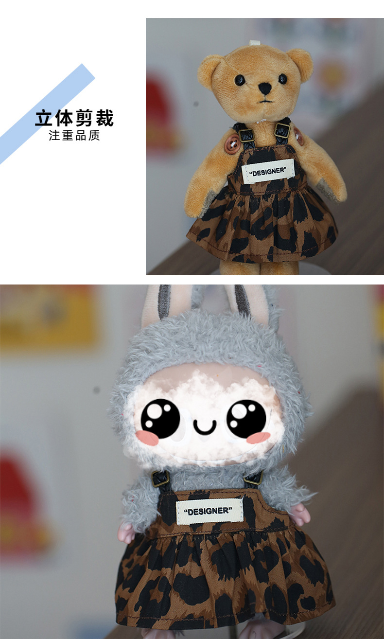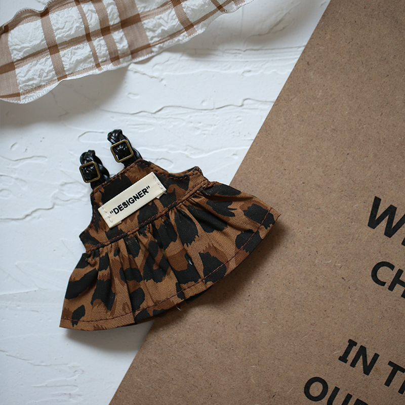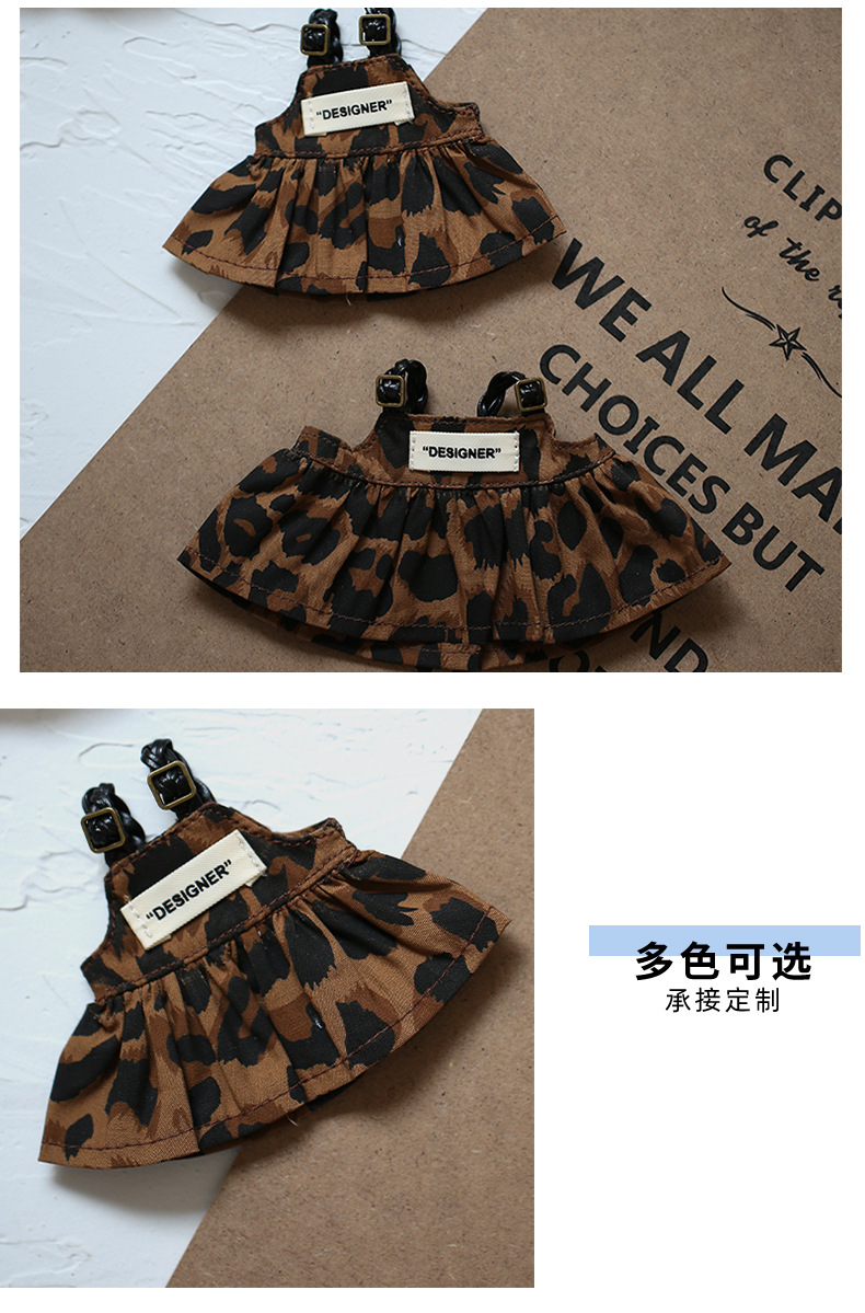 옷을 입은 라부부 인형 Y066 레오파드 프린트 스트랩 드레스 키체인 인형 옷갈아입히기 인형 액세서리
