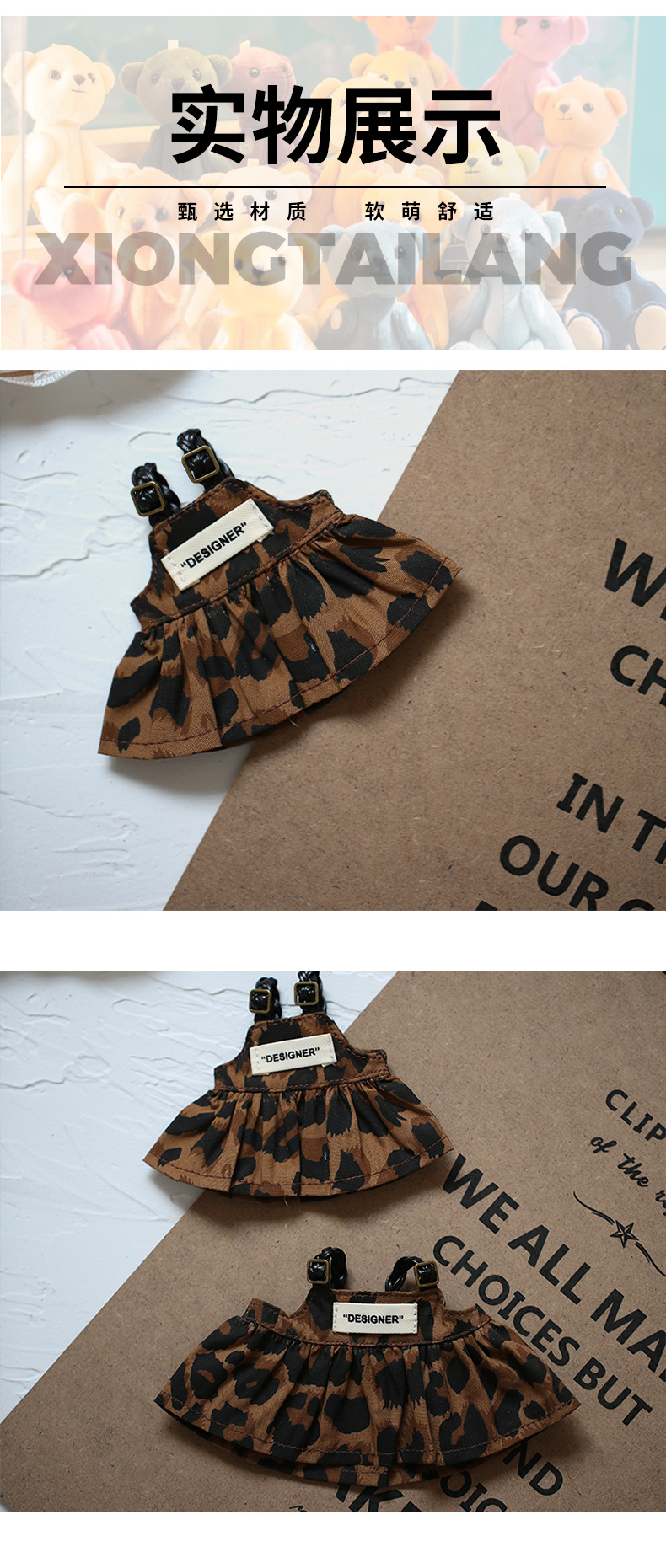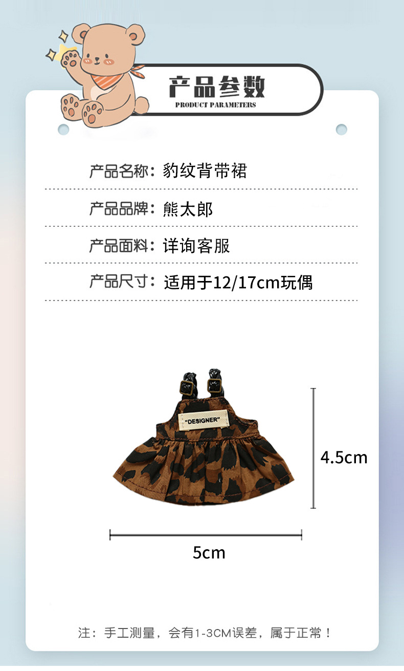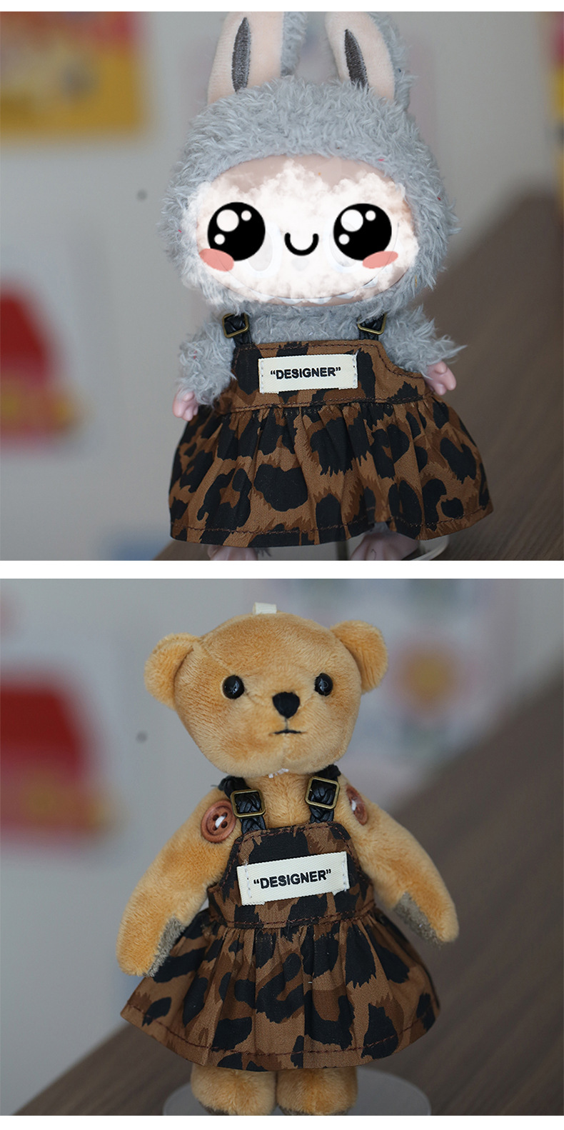 옷을 입은 라부부 인형 Y066 레오파드 프린트 스트랩 드레스 키체인 인형 옷갈아입히기 인형 액세서리