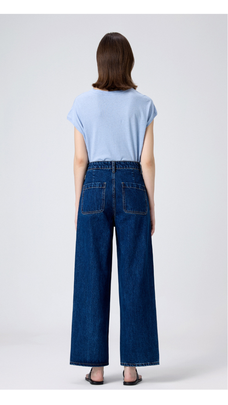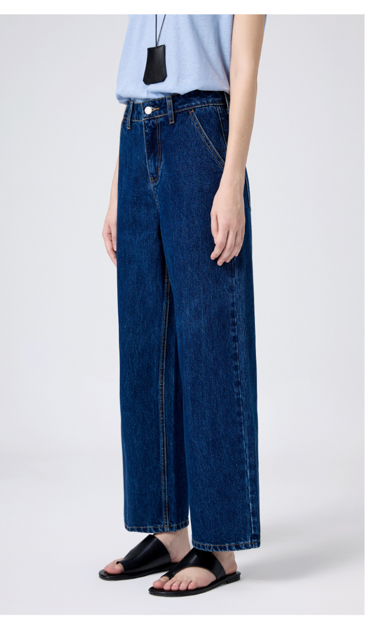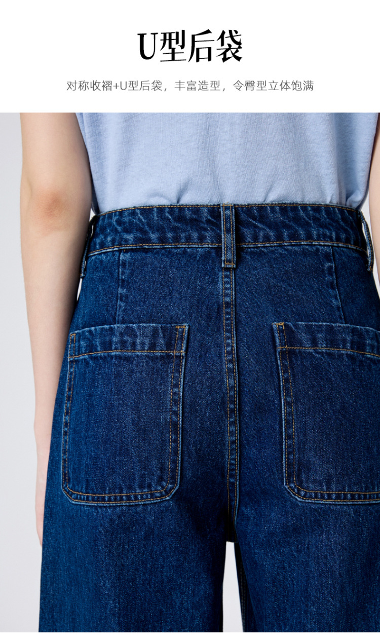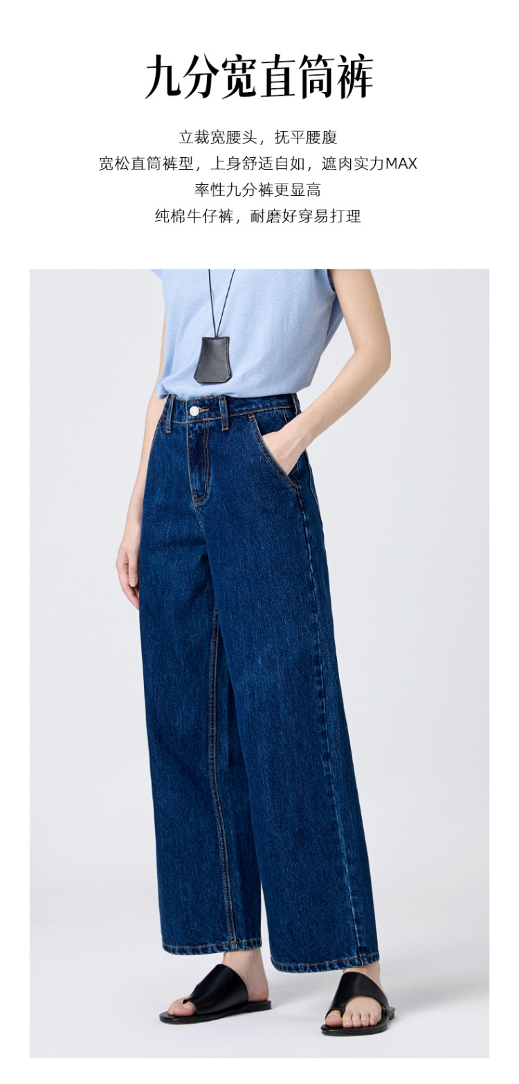 MBB 9 점 스트레이트 레그 팬츠 여자 2025 봄 새로운 탄성 U 자형 리어 포켓 높은 허리 슬리밍 넓은 다리 데님 바지스토어 가기