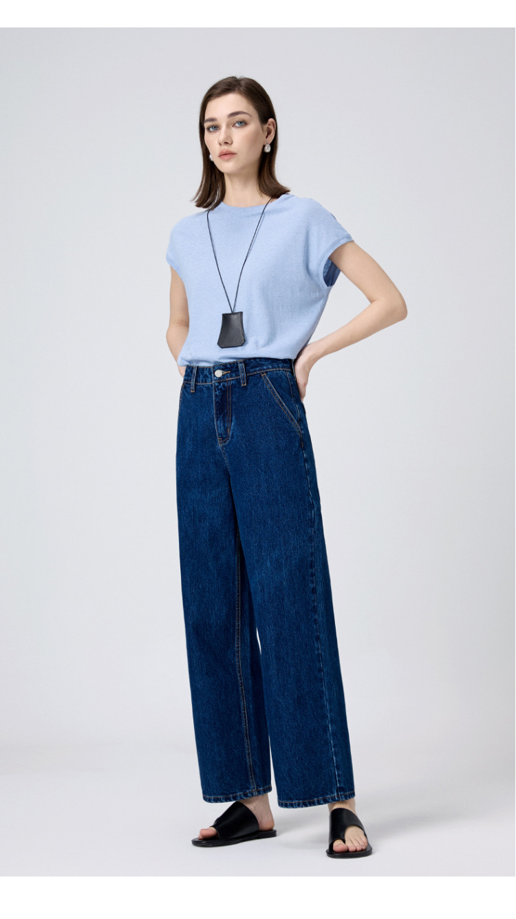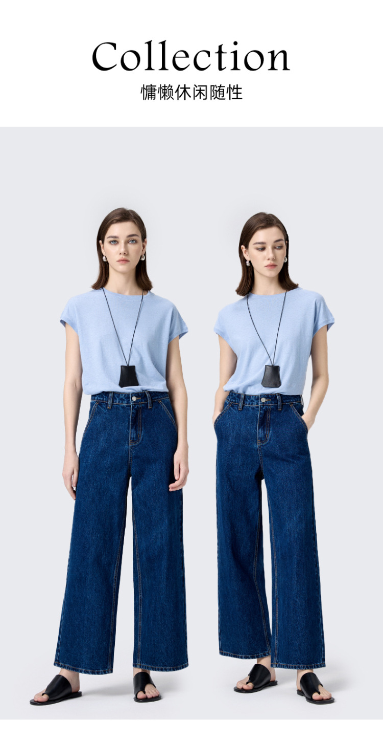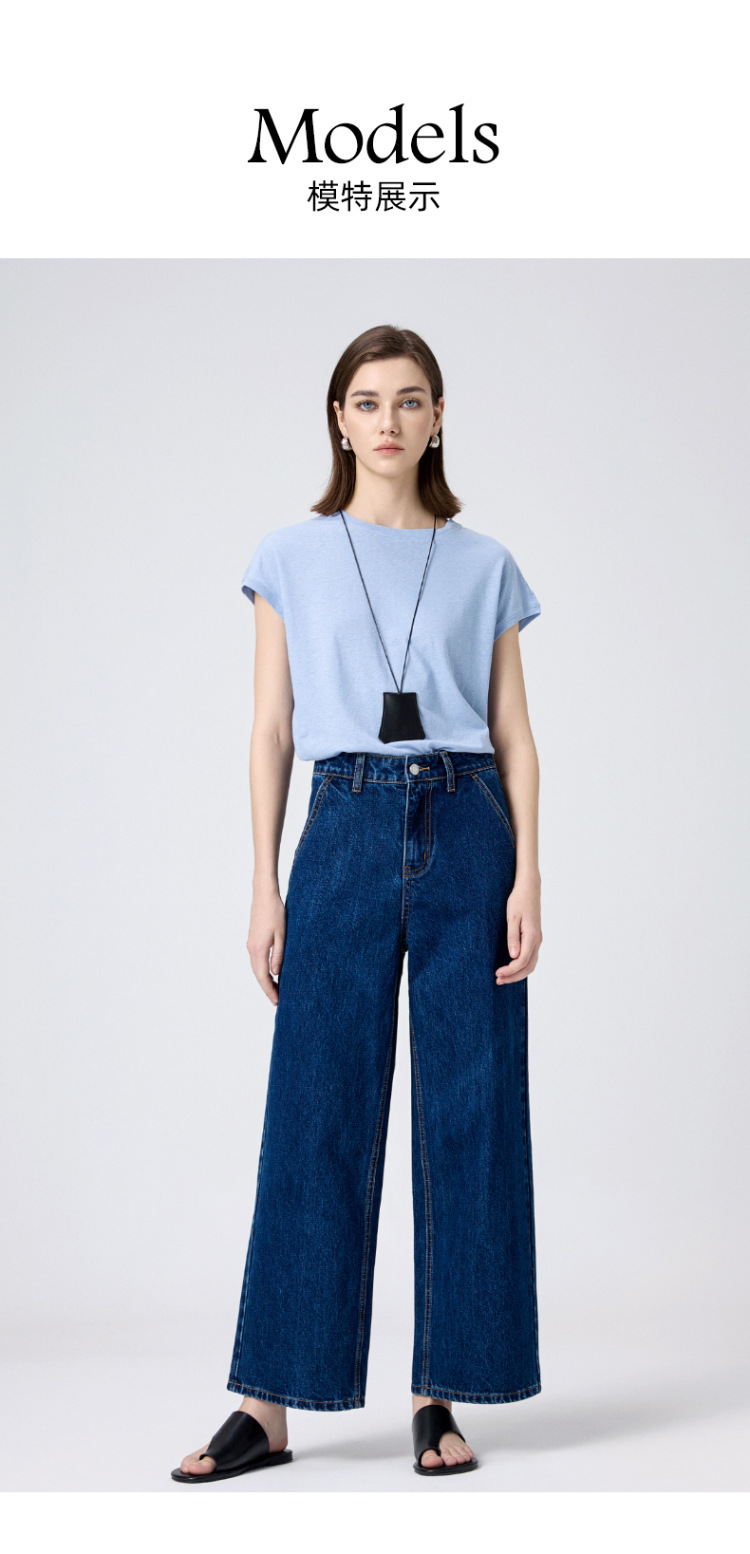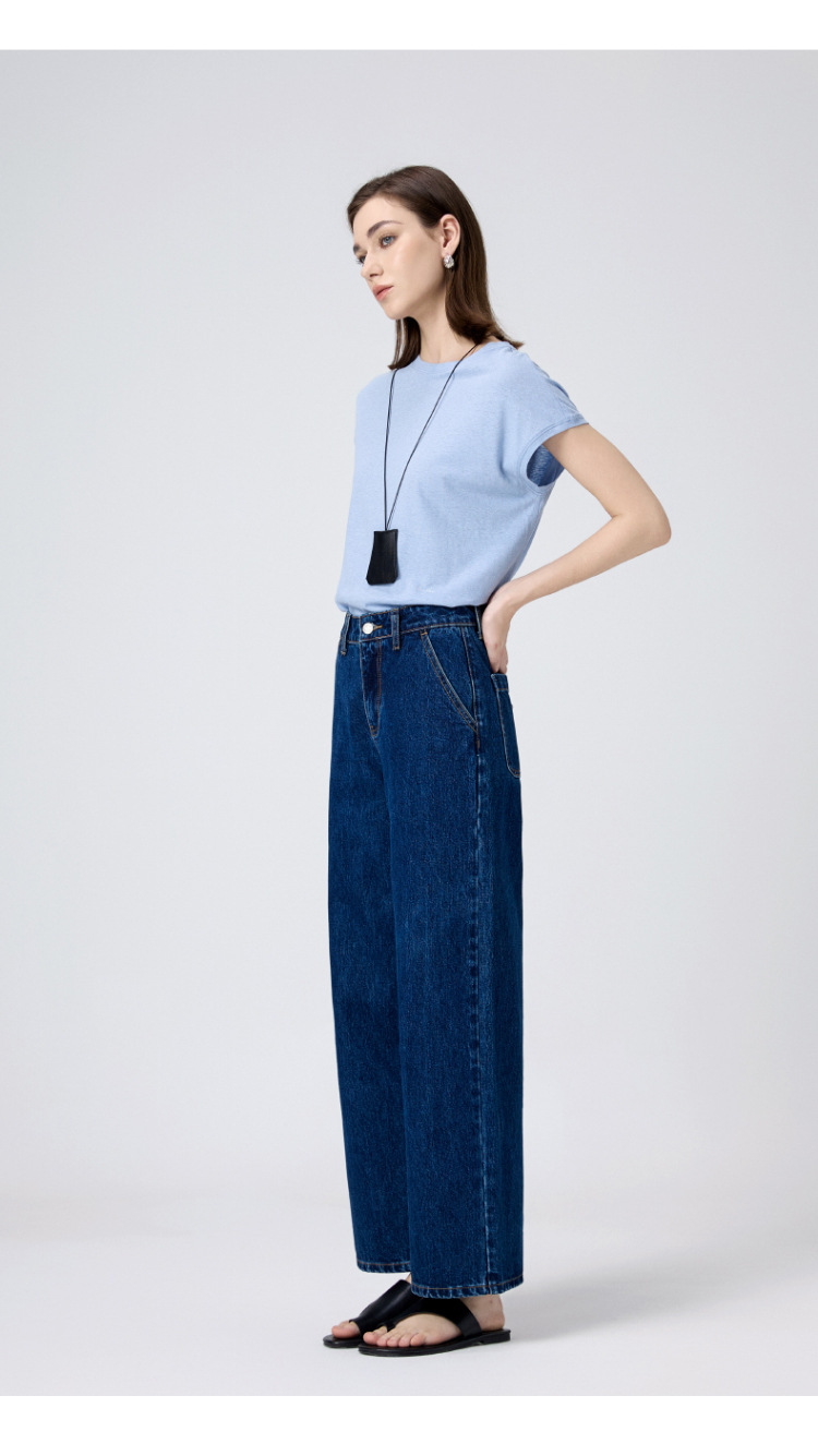 MBB 9 점 스트레이트 레그 팬츠 여자 2025 봄 새로운 탄성 U 자형 리어 포켓 높은 허리 슬리밍 넓은 다리 데님 바지스토어 가기