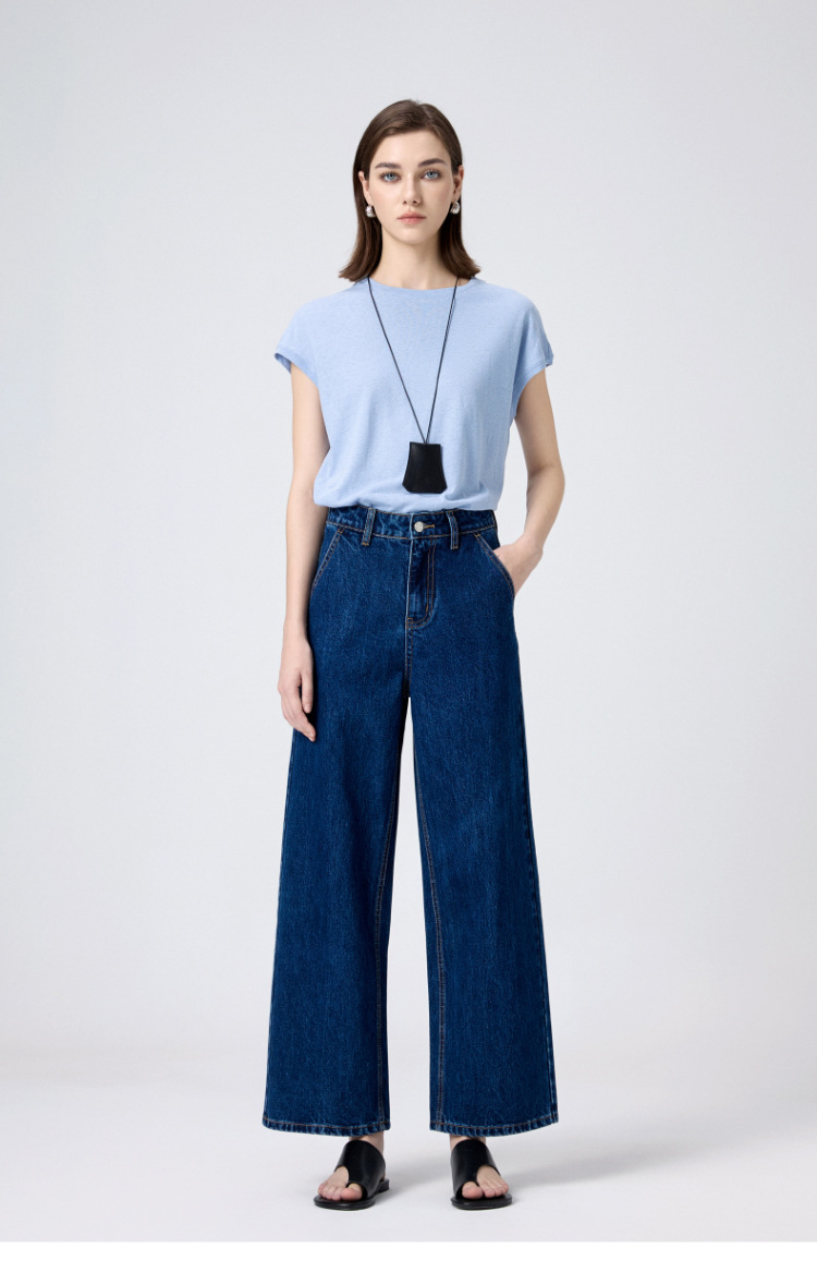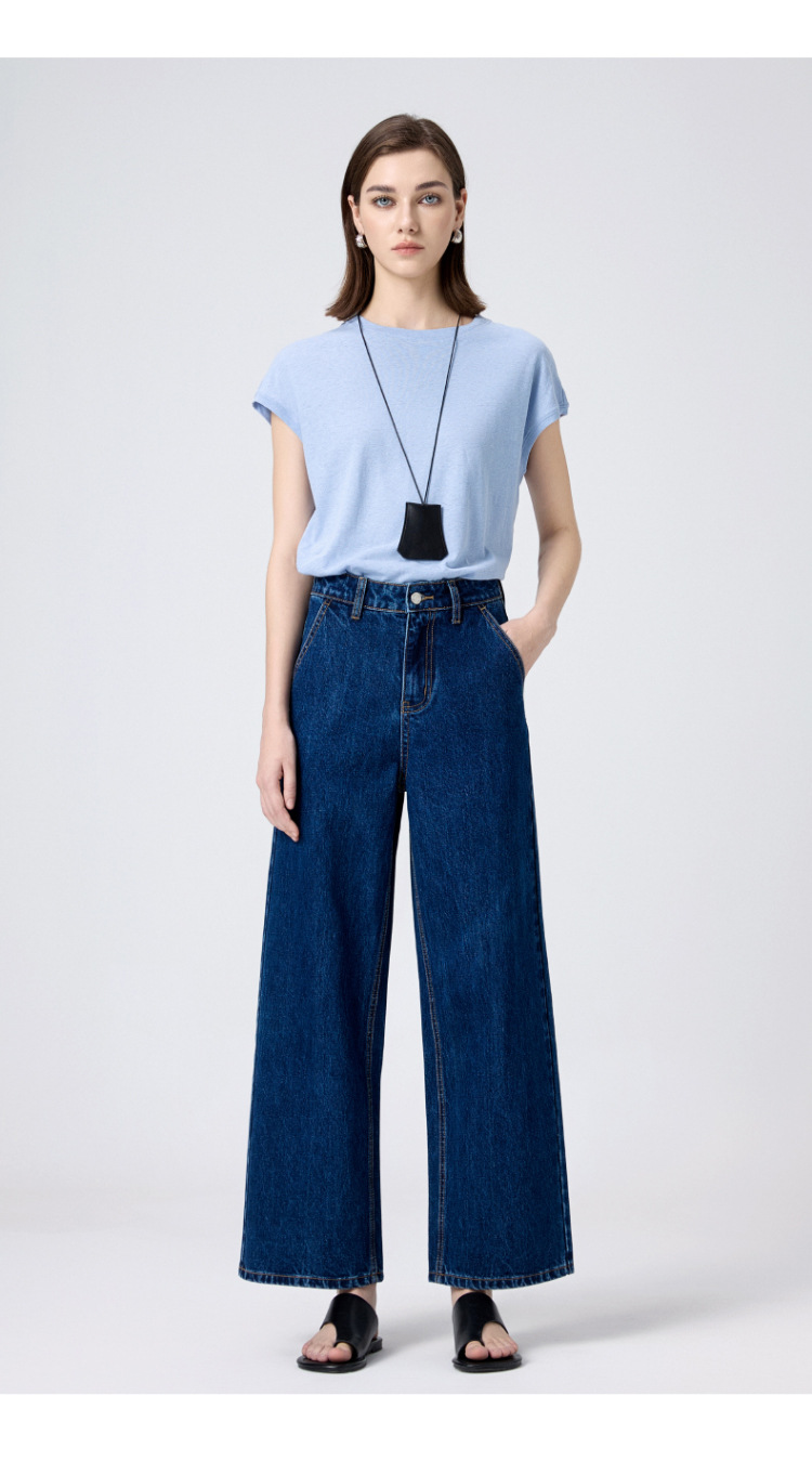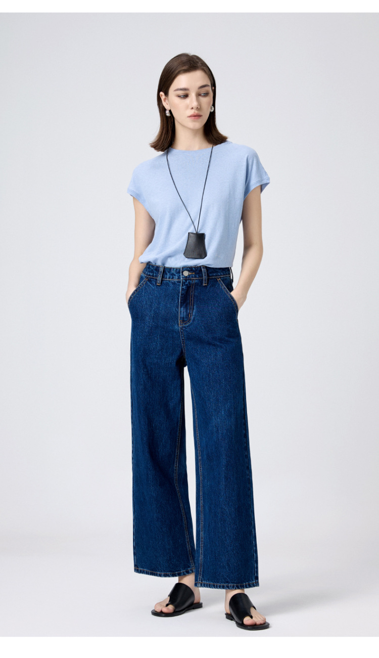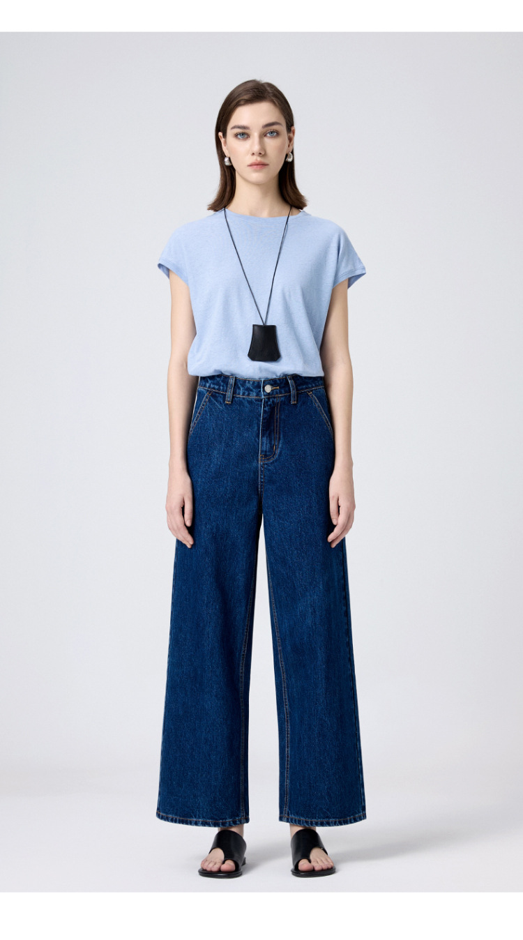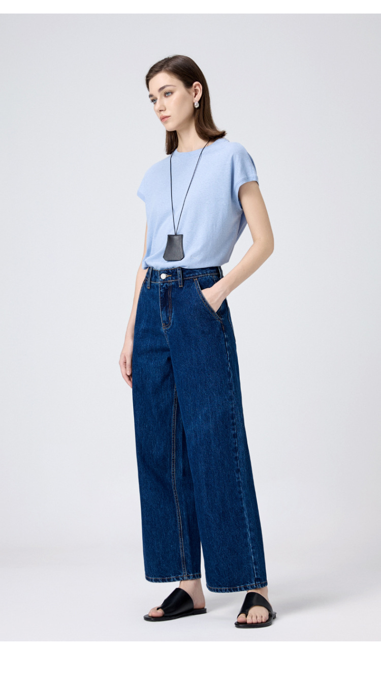 MBB 9 점 스트레이트 레그 팬츠 여자 2025 봄 새로운 탄성 U 자형 리어 포켓 높은 허리 슬리밍 넓은 다리 데님 바지스토어 가기