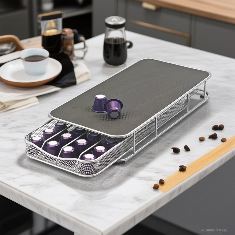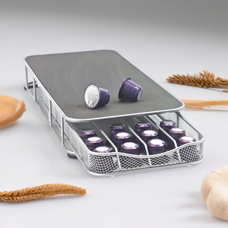 국경 간 서랍 형 커피 캡슐 저장 상자 창조적 인 철 선반 커피 기계 바닥 방진 저장 랙