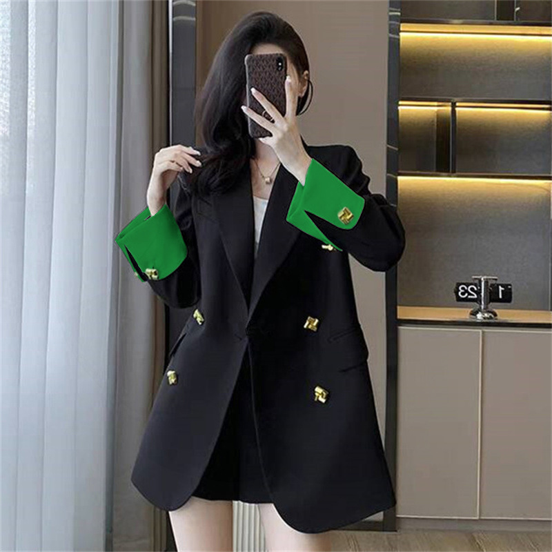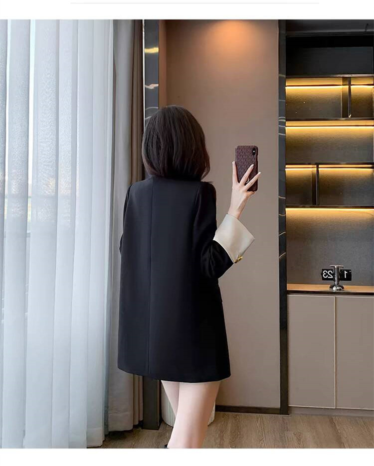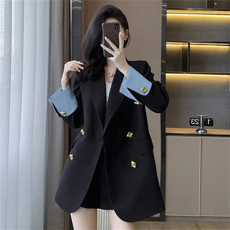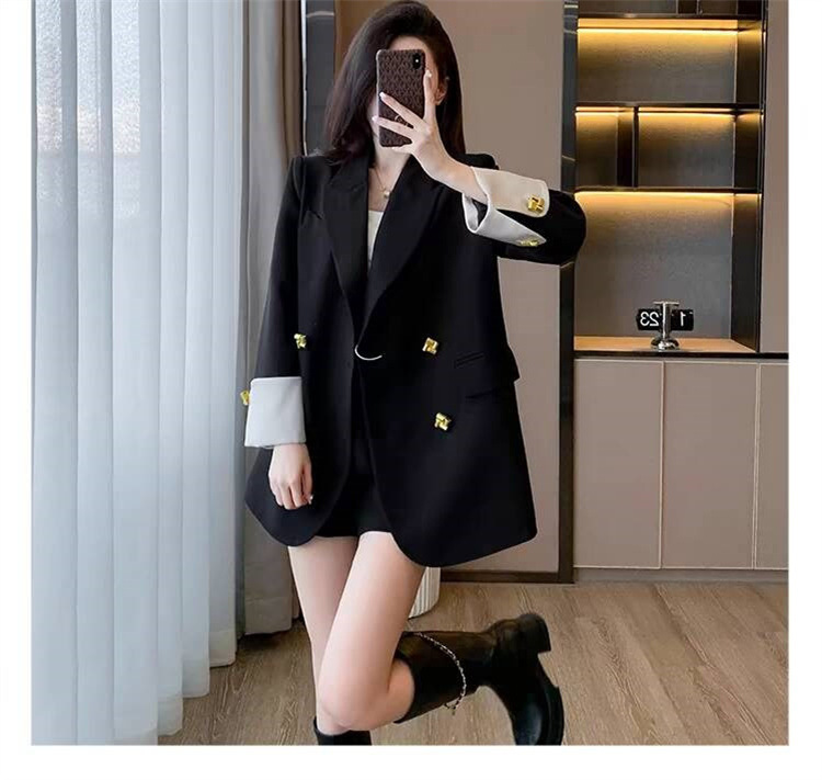 2025 봄과 가을 새로운 세트 재킷 여성 한국 스타일 캐주얼 루즈 패셔너블 우아한 작은 세트 탑 명암 컬러 바느질