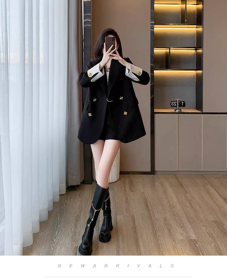 2025 봄과 가을 새로운 세트 재킷 여성 한국 스타일 캐주얼 루즈 패셔너블 우아한 작은 세트 탑 명암 컬러 바느질스토어 가기