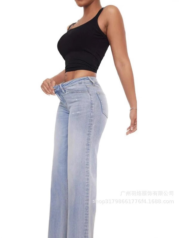 2025 봄 새로운 좁은 넓은 다리 바지 높은 허리 엉덩이 스트레이트 느슨한 청바지 여성스토어 가기
