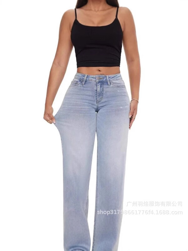 2025 봄 새로운 좁은 넓은 다리 바지 높은 허리 엉덩이 스트레이트 느슨한 청바지 여성