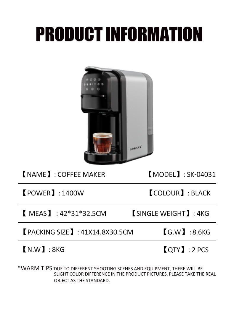 국경 간 유럽 규정 3in1 커피 기계 전기 난방 커피 포트 커피 머신 에스프레소 캡슐 커피 머신