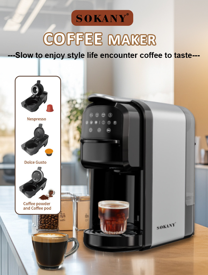 국경 간 유럽 규정 3in1 커피 기계 전기 난방 커피 포트 커피 머신 에스프레소 캡슐 커피 머신스토어 가기