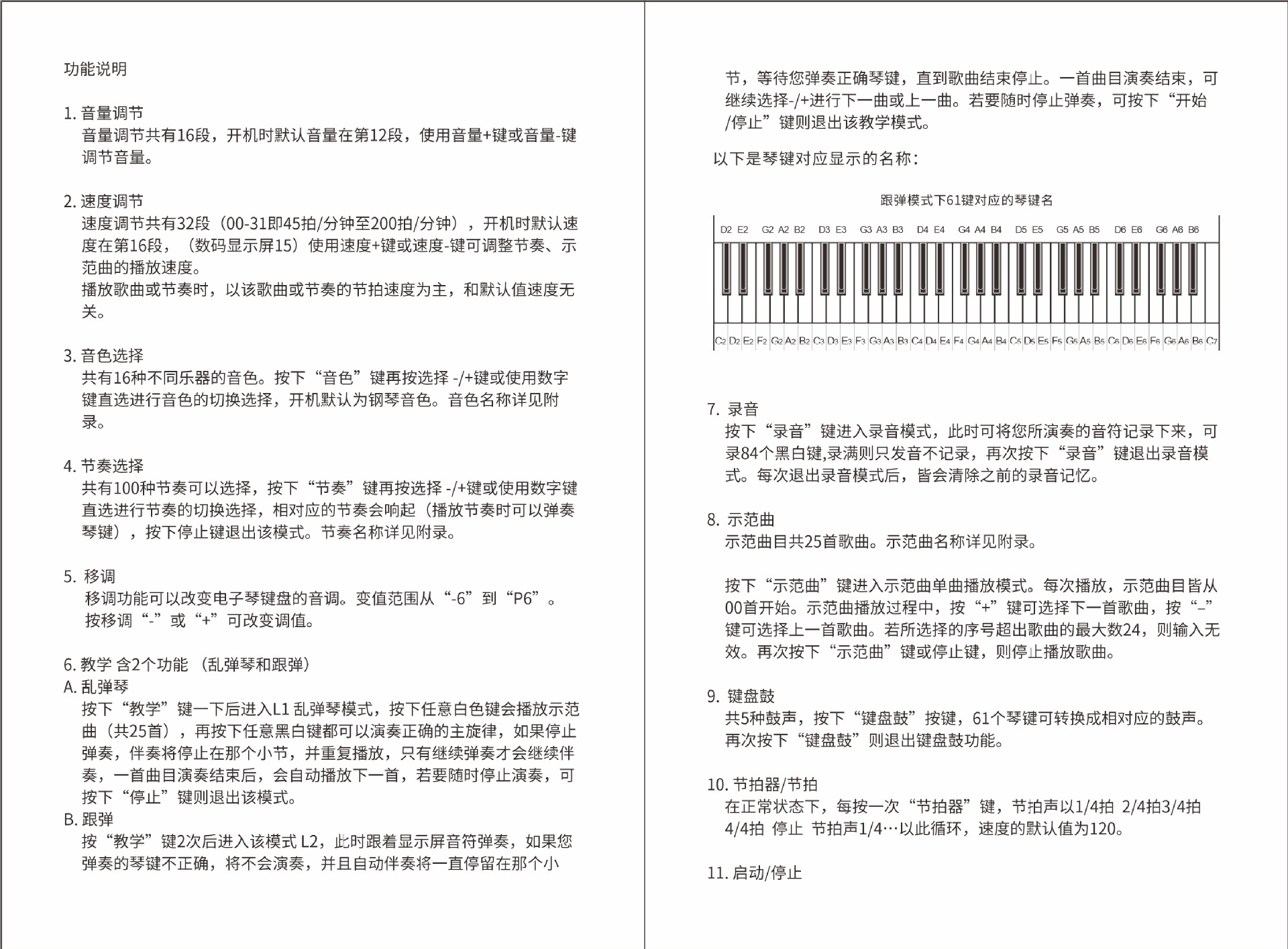 접이식 전자 피아노 61 키 휴대용 충전 버전 성인 학생 어린이 초보자 전자 피아노 악기 연주