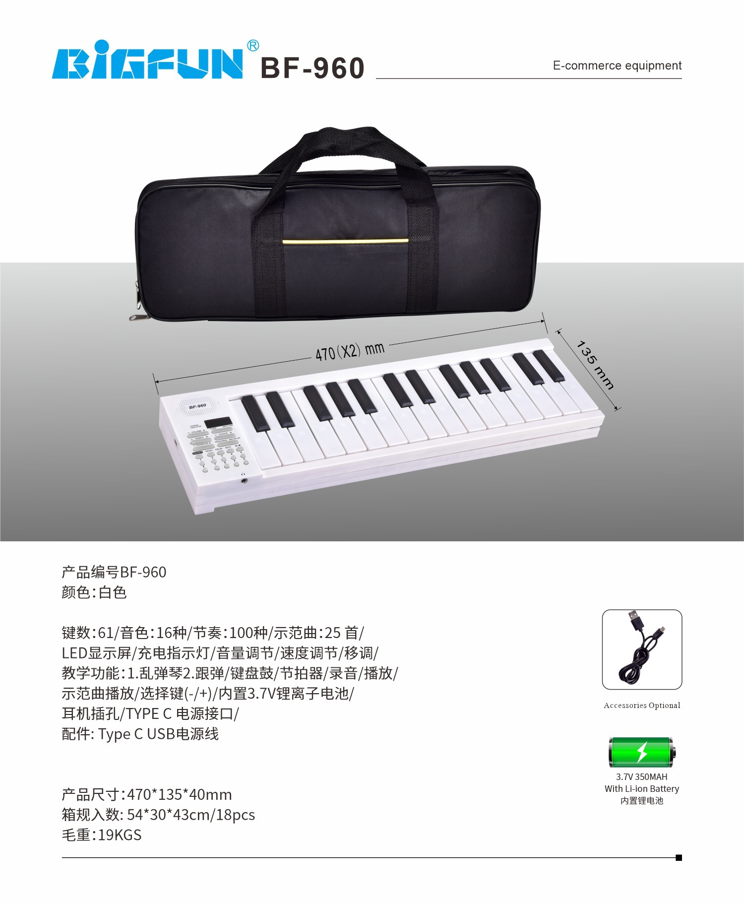 • 흰색 61개 열쇠 + 피아노 가방