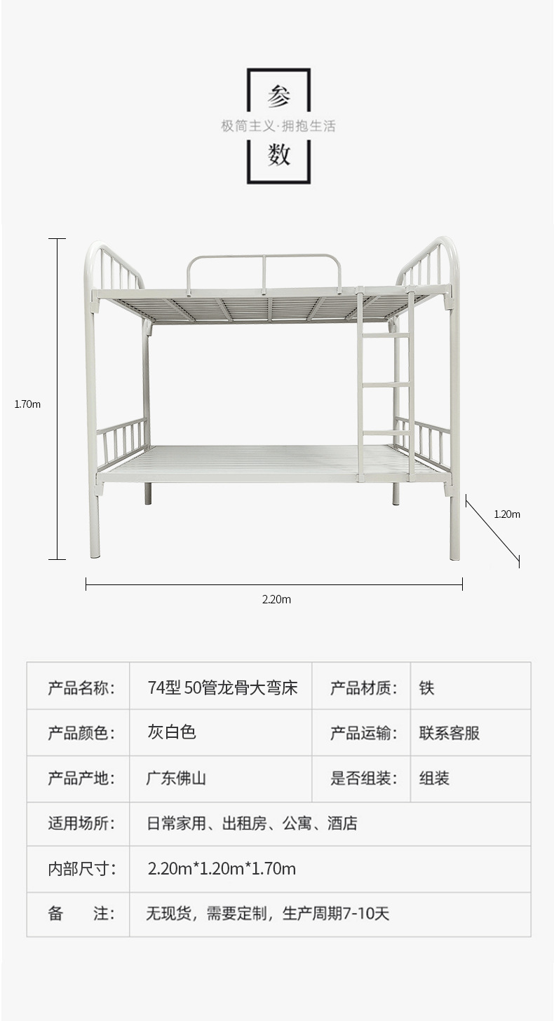 1.2 미터 50 튜브 회색 용골 큰 곡선 침대 아파트 높고 낮은 침대 철제 프레임 침대 이층 학생 기숙사 이층 침대