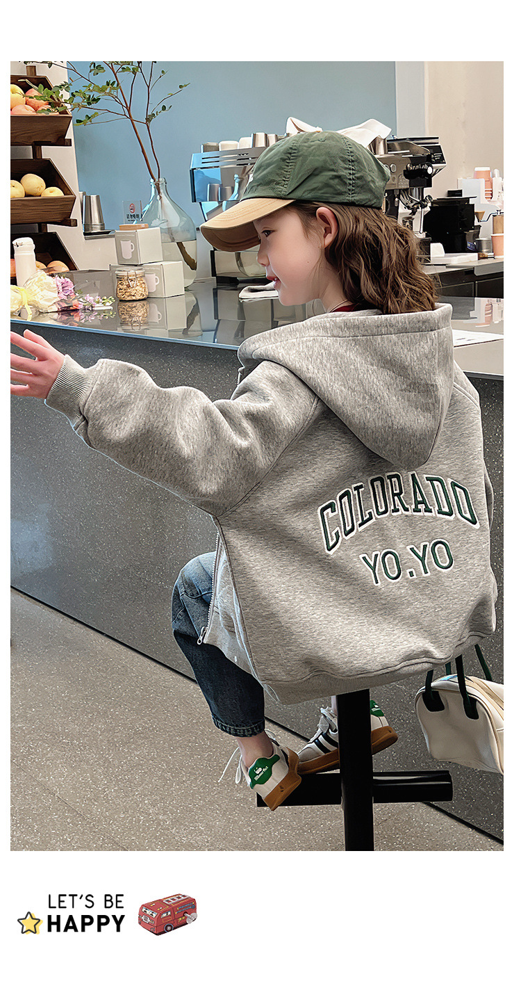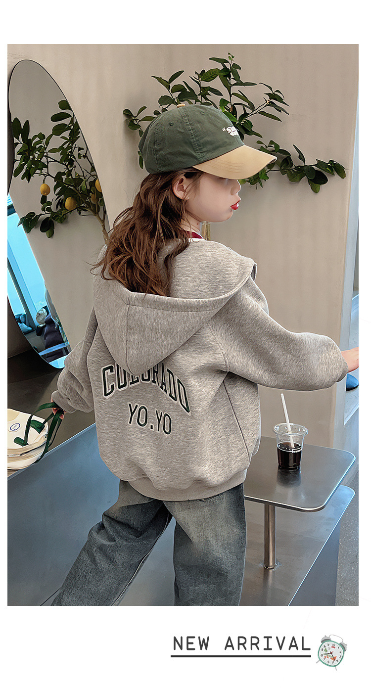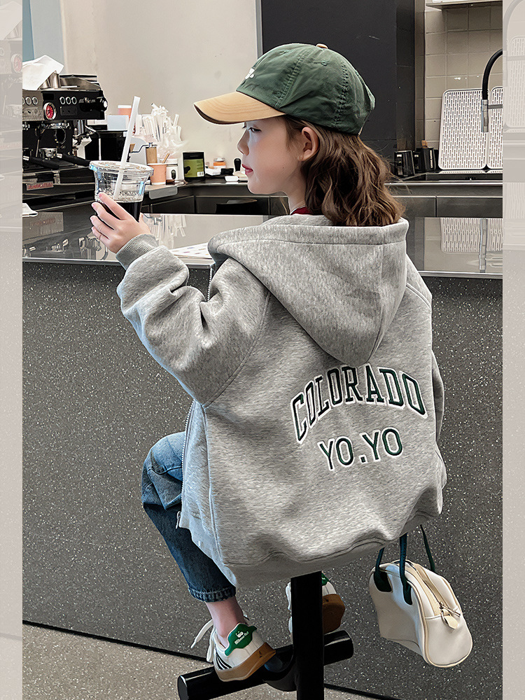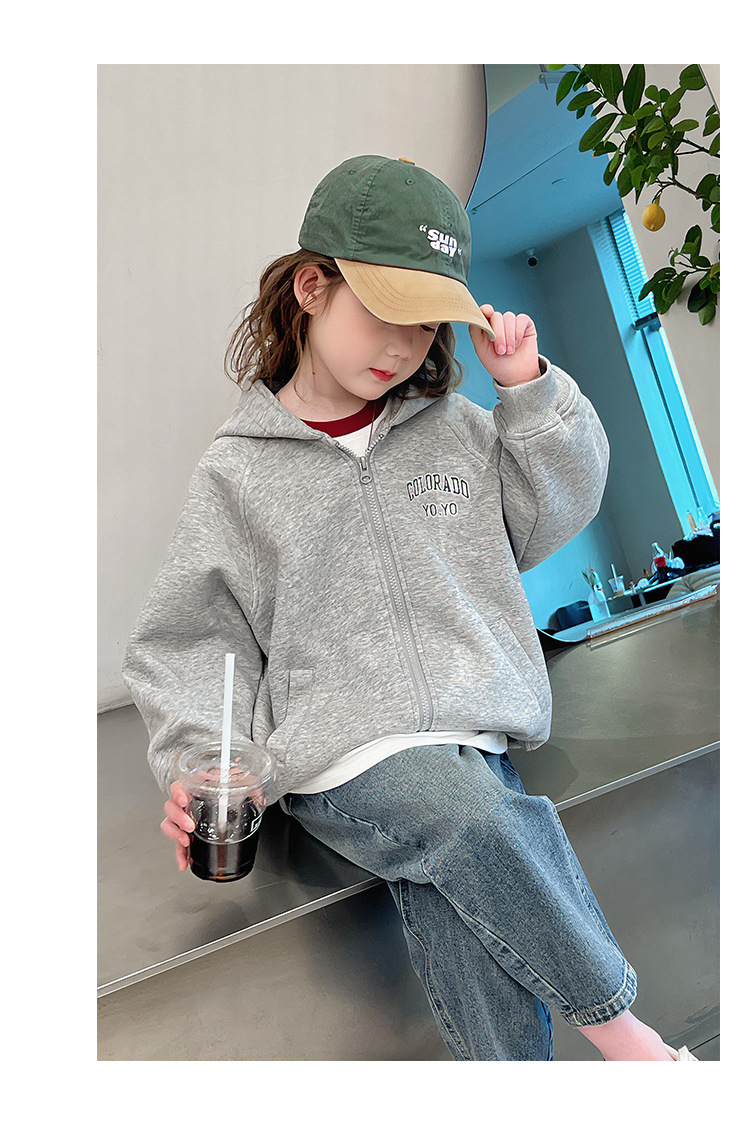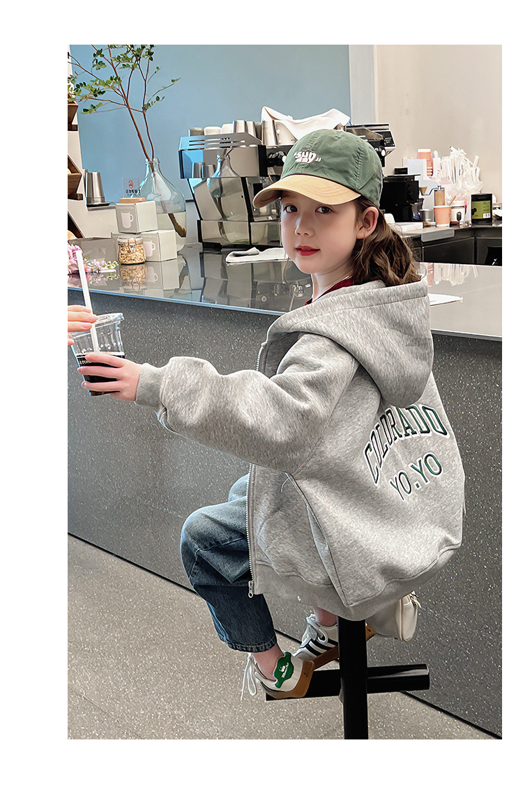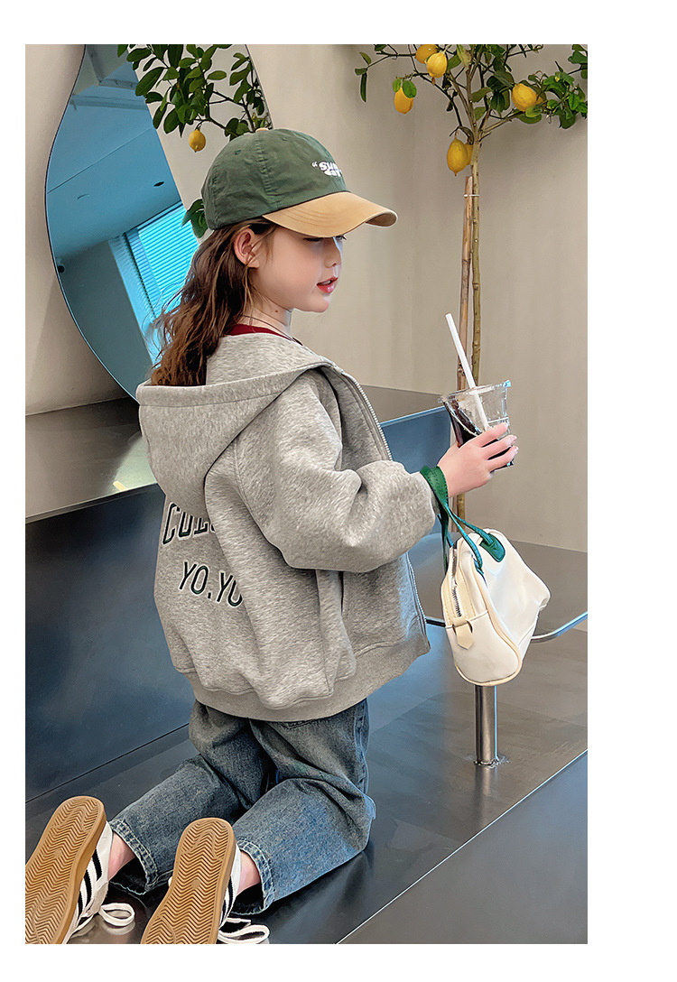 소녀 어깨 후드 코트 어린이 서양식 스포츠 카디건 대형 아동복 루즈 탑 2025 봄 새로운 스타일스토어 가기