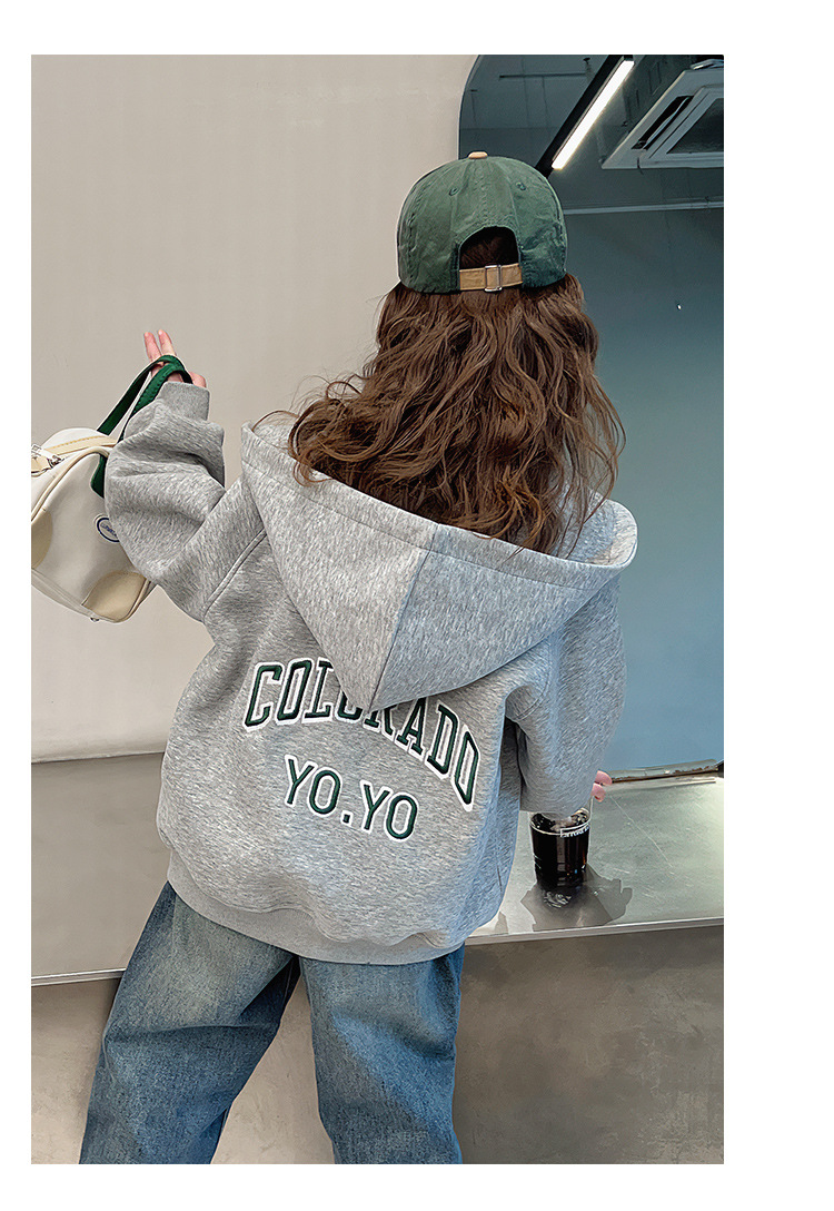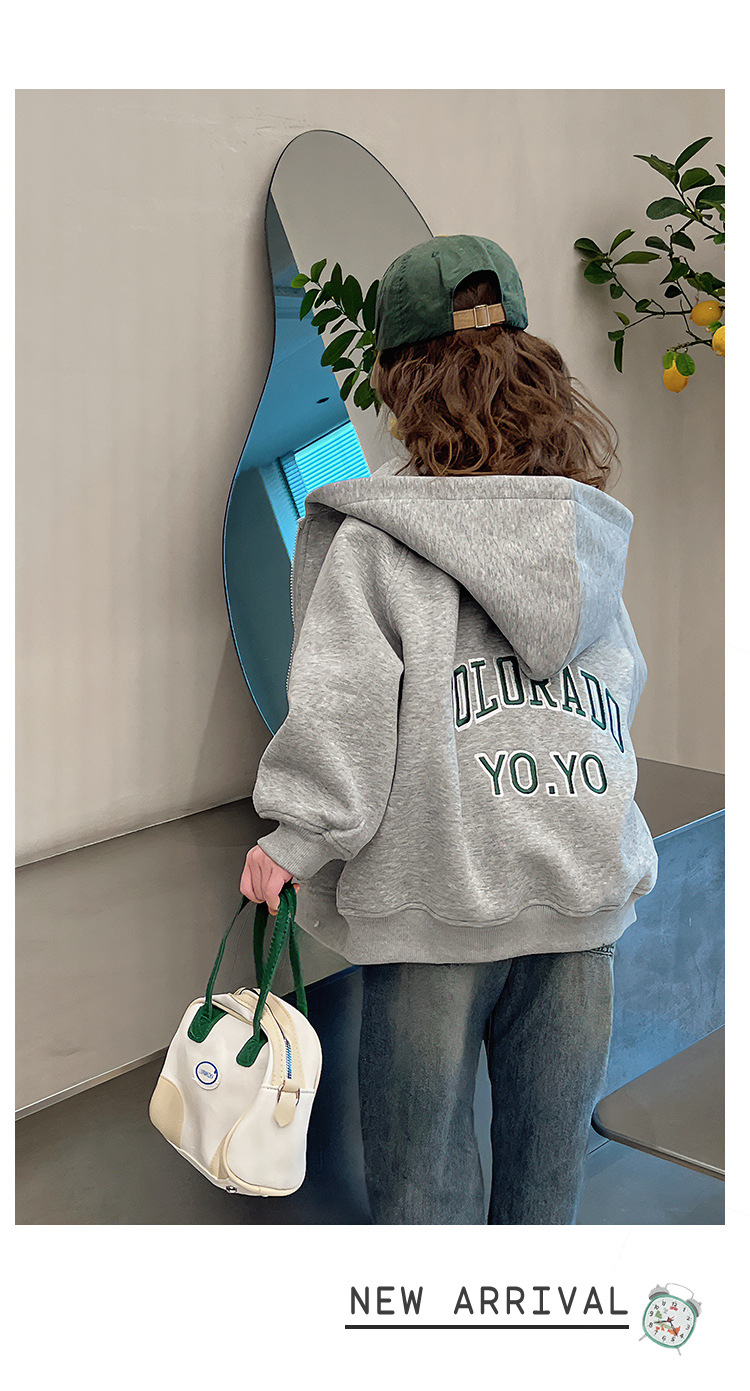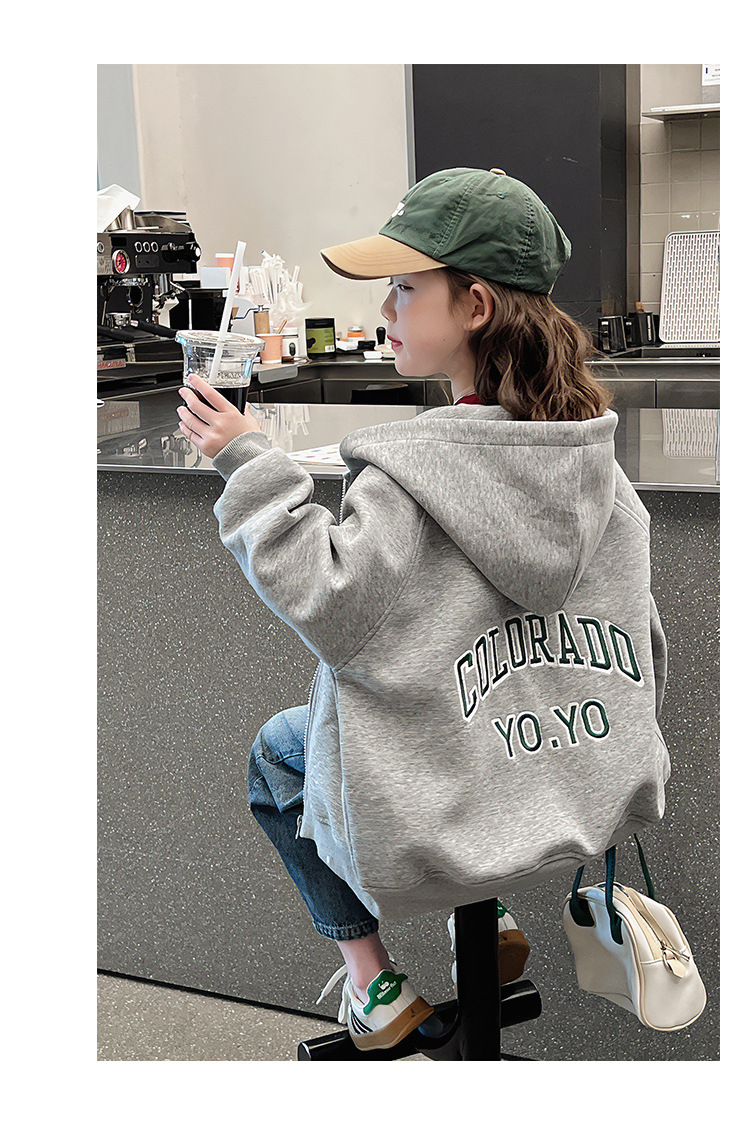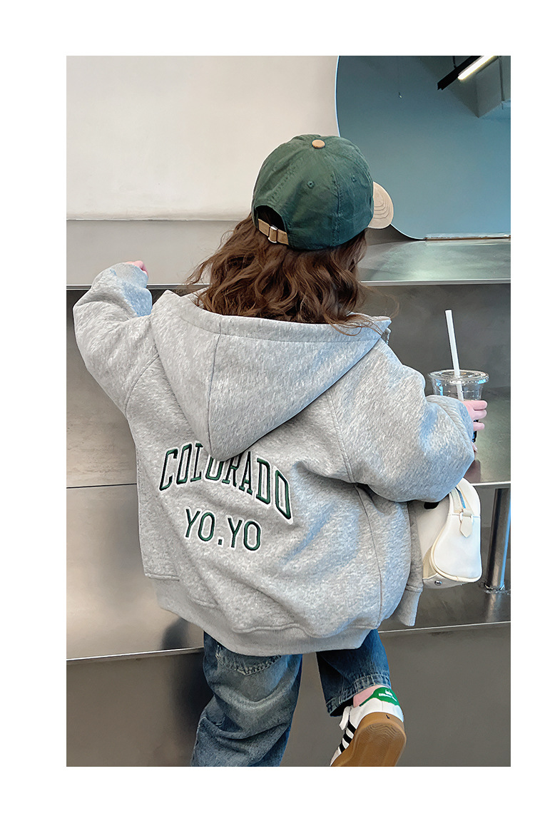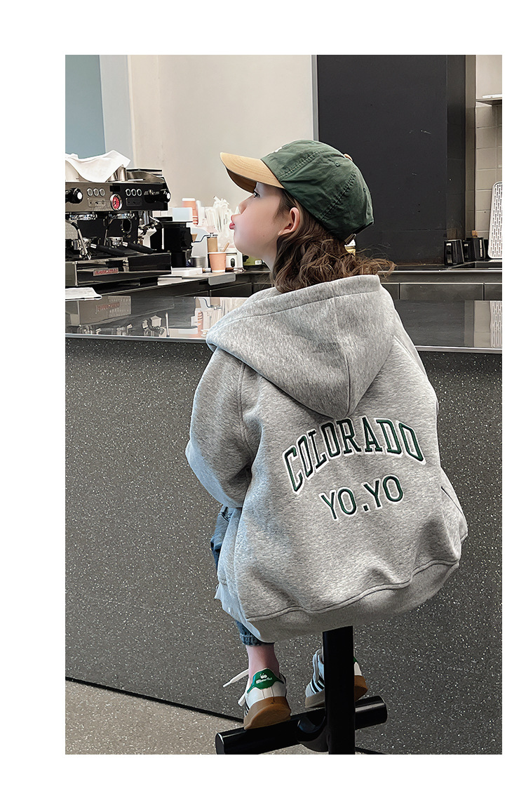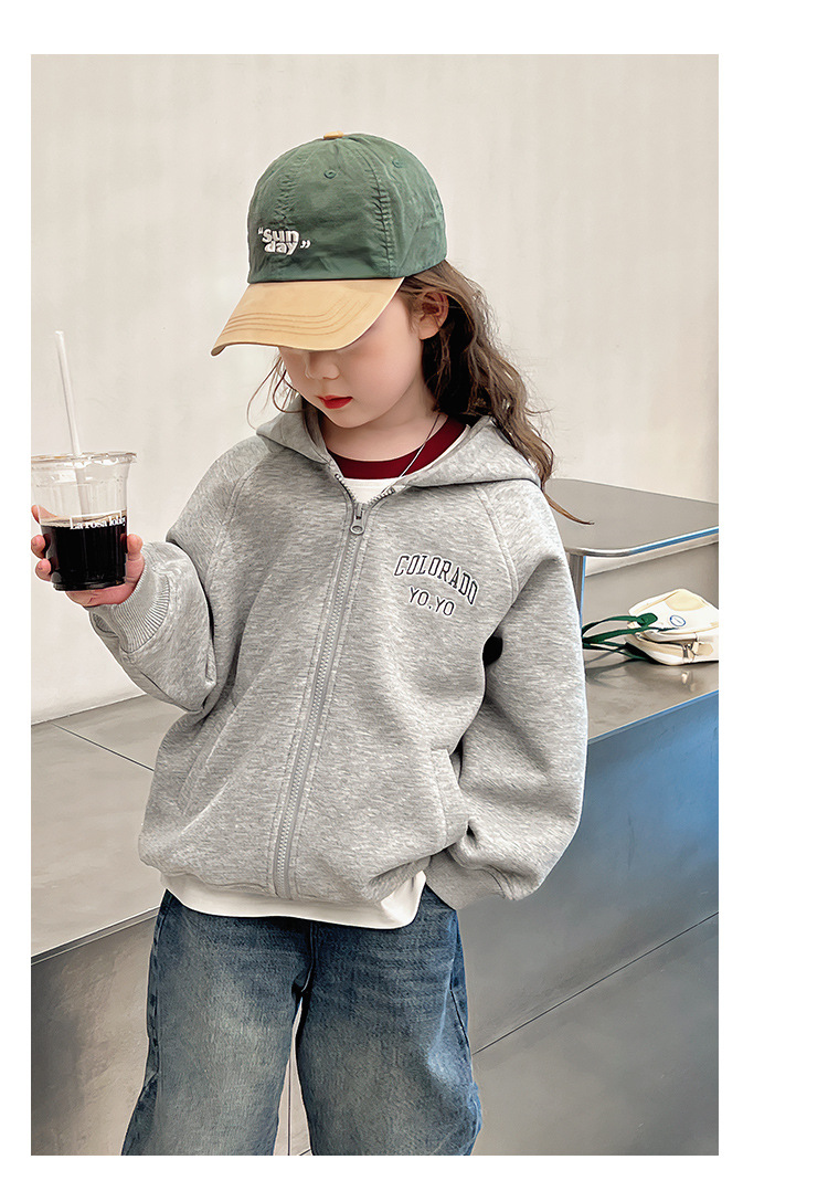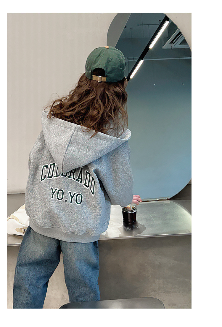 소녀 어깨 후드 코트 어린이 서양식 스포츠 카디건 대형 아동복 루즈 탑 2025 봄 새로운 스타일스토어 가기