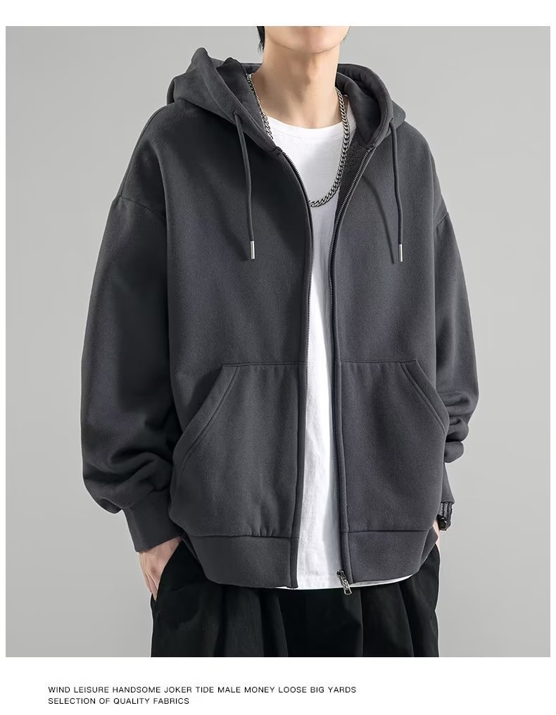 가을과 겨울 올 매치 카디건 기모 남성 솔리드 컬러 우아한 새로운 일본 루즈 패셔너블 후드 스웨터 2022 새로운 캐주얼스토어 가기