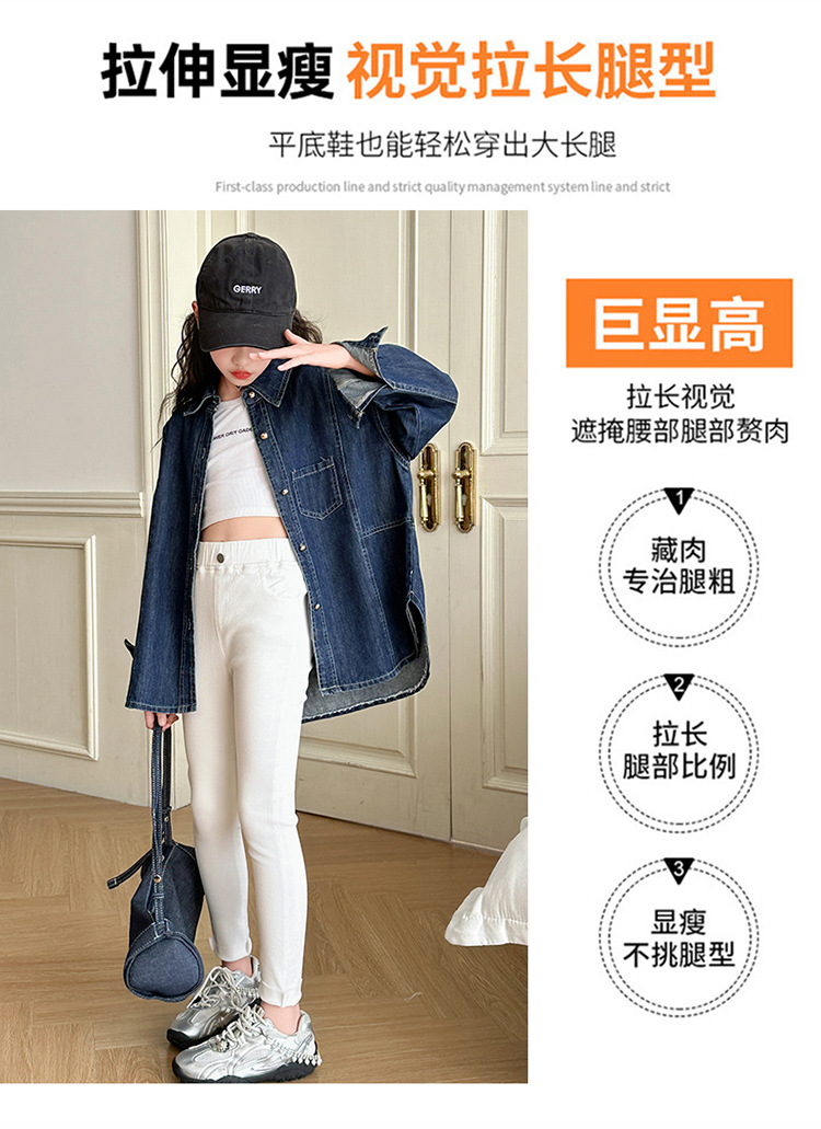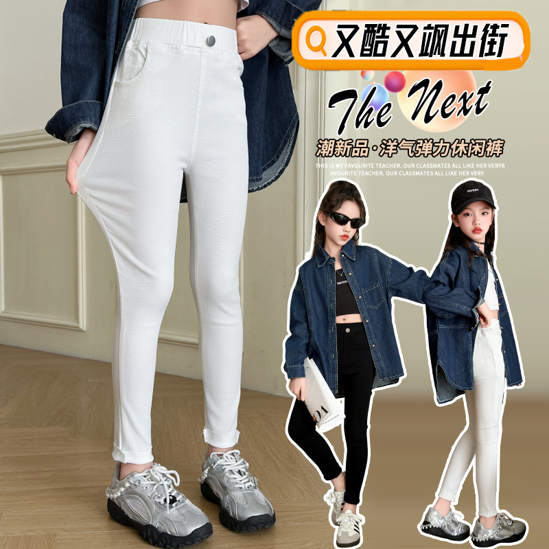 소녀 화이트 하이 허리 신축성있는 바지 봄과 가을 새로운 슬림 핏 슬리밍 연필 바지 아동베이스 긴 트렌디 바지스토어 가기