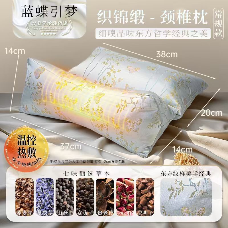 • 푸른나비가 꿈을 불러일으킨 일체형베개 [소형-온열형] 블루