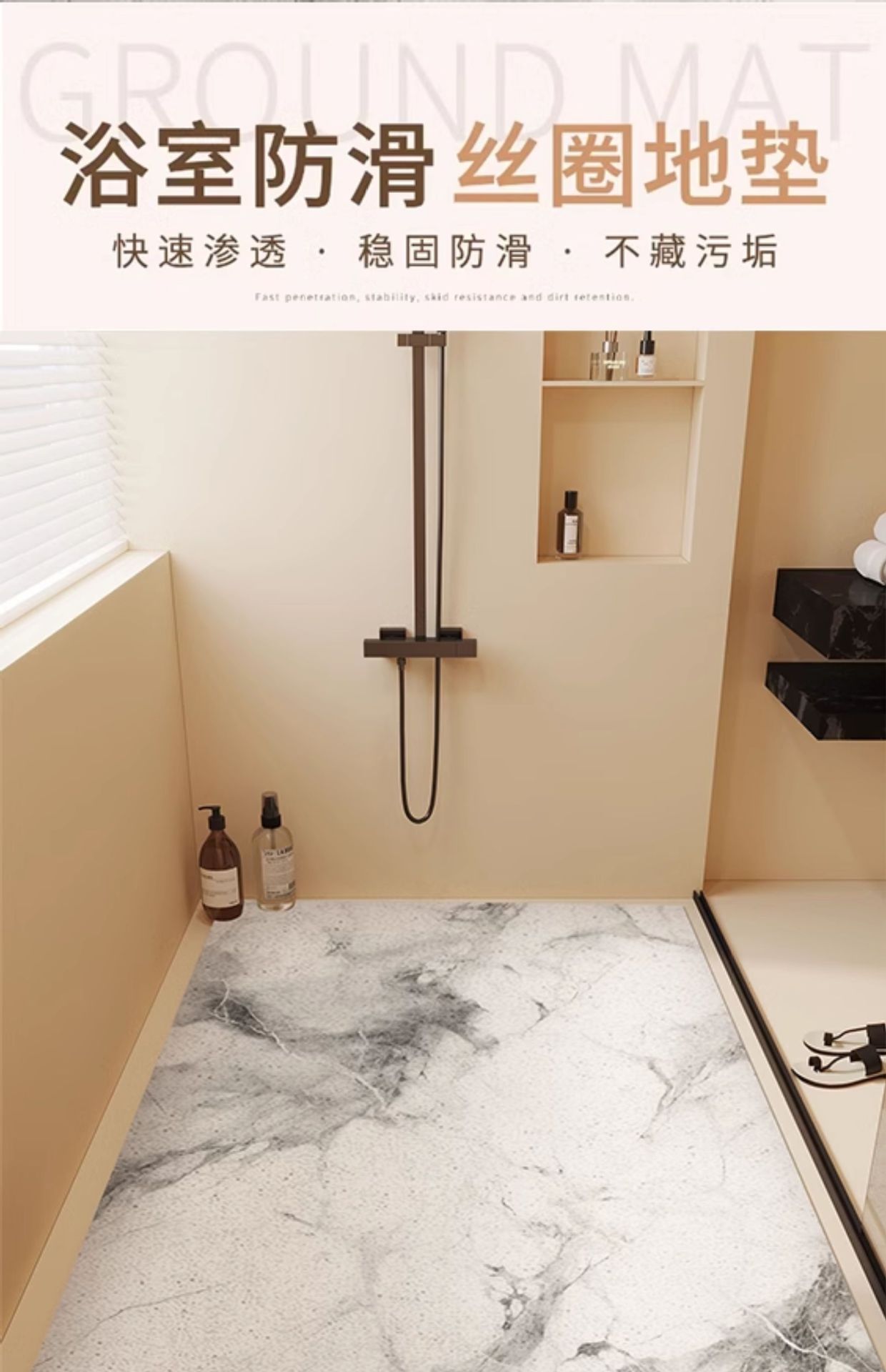욕실용 실링크 매티, 샤워실 전용 미끄럼 방지 발매트, 욕실 전체 매트, 절단 가능