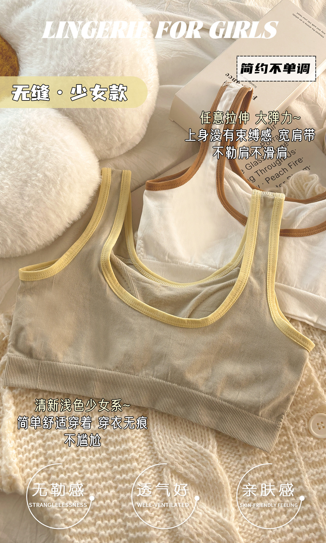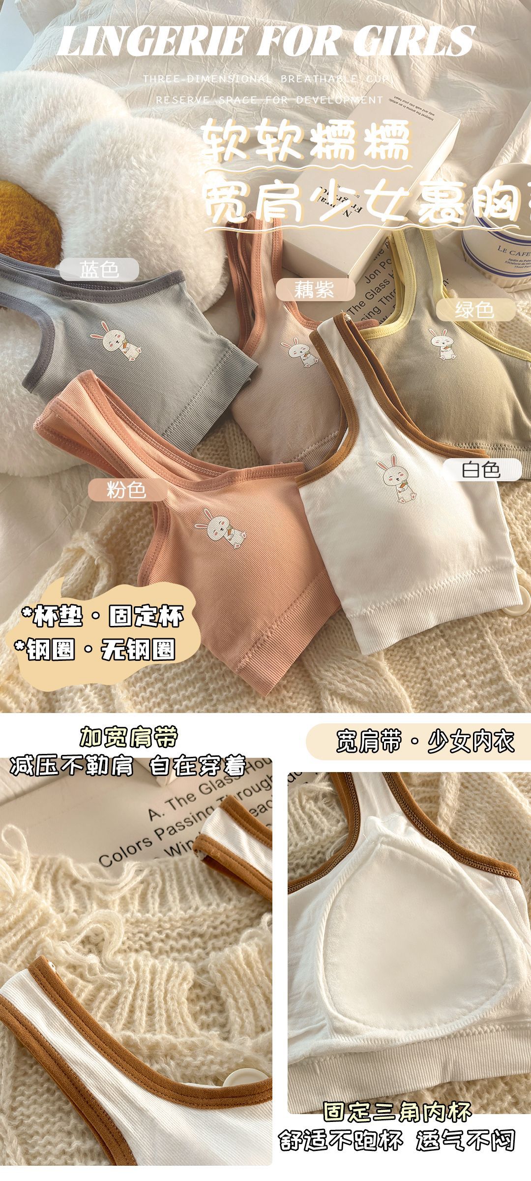 발달 여자 속옷 중학생 고정 컵 강철 반지 포장 가슴 여자 편안한 작은 조끼 브래지어