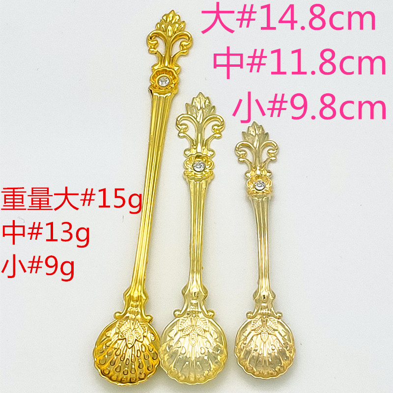 立体小勺子3个型号规格尺寸 小#9.8cm 大#11.3cm 特#14.3cm 有多个颜色金色 银色 红古铜色 青古铜色