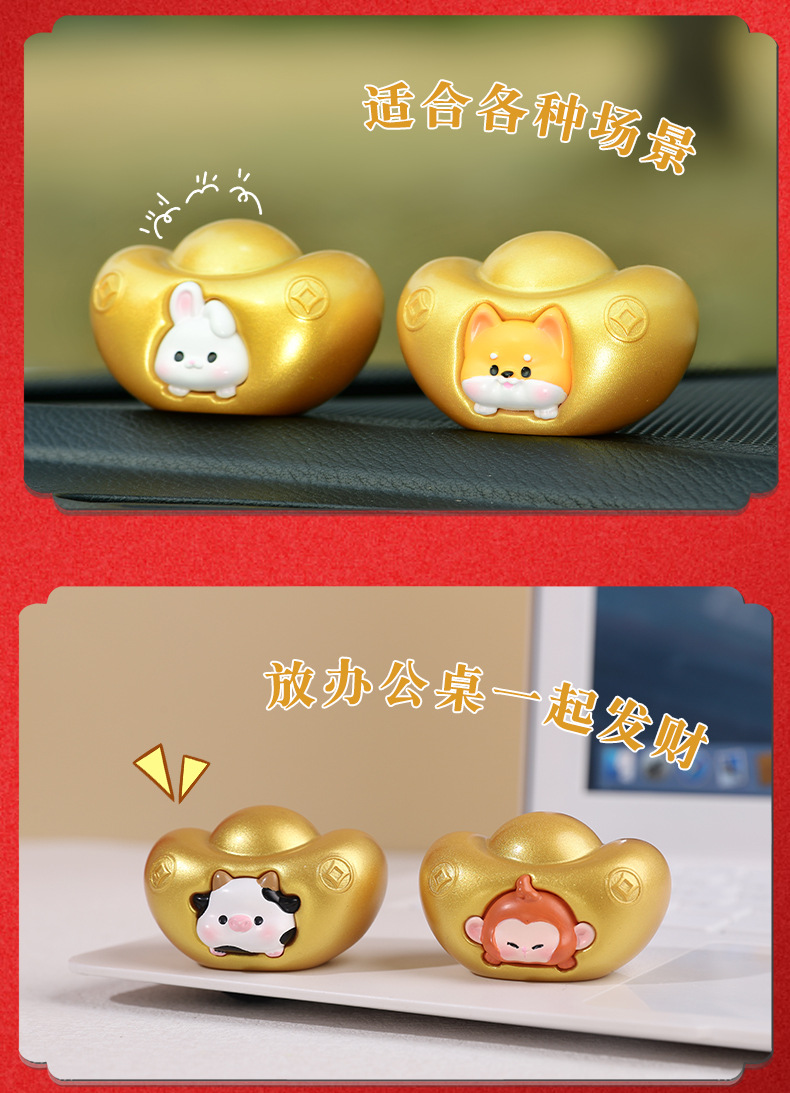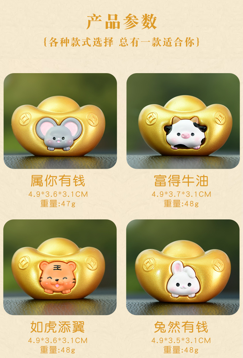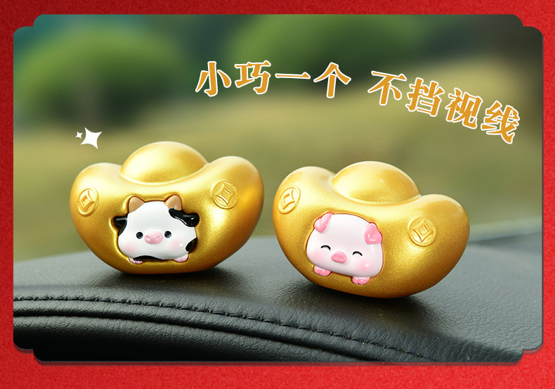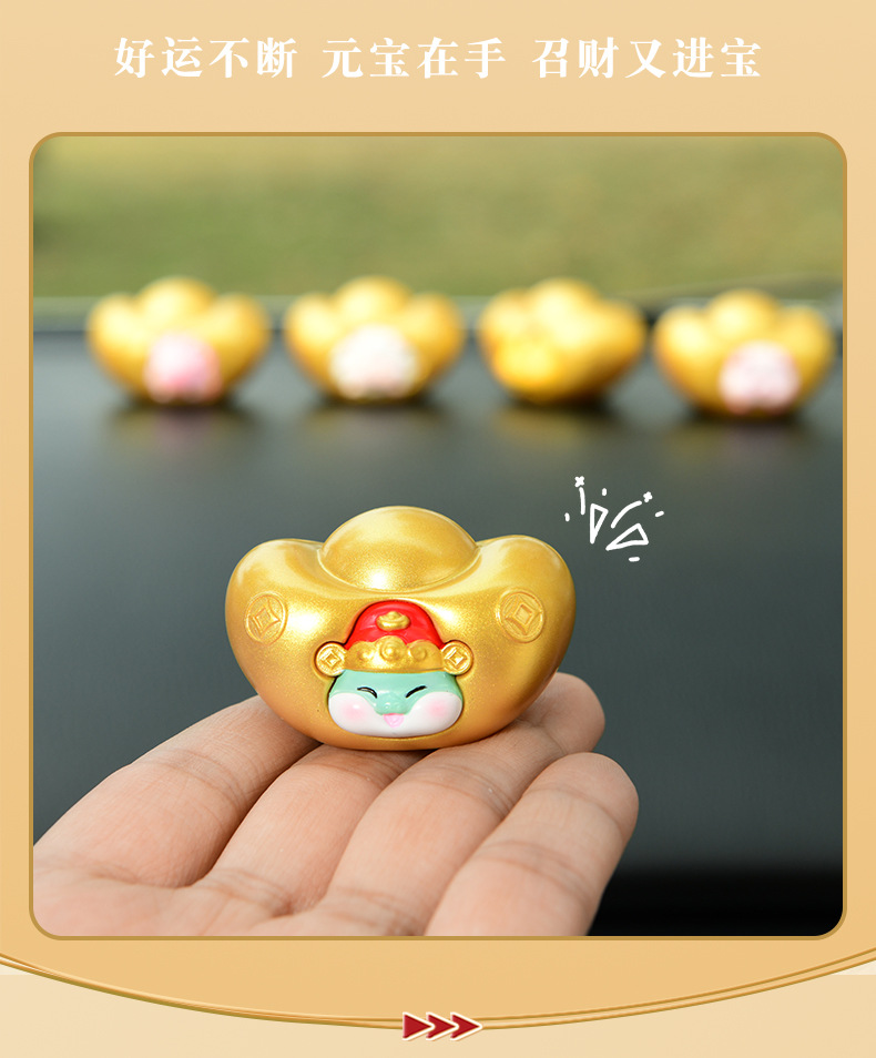 조디악 Yuanbao 자동차 장식품 창조적 인 새해 Q 에디션 골드 Yuanbao 자동차 장식 자동차 액세서리 센터 콘솔