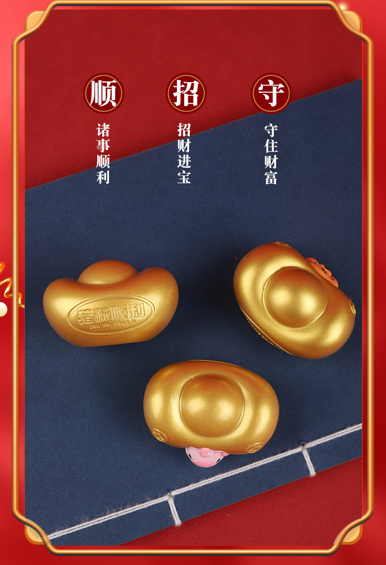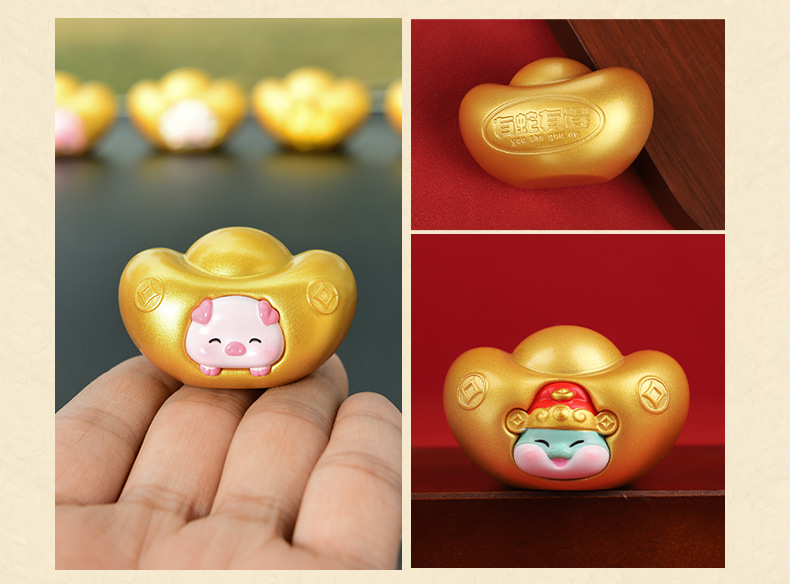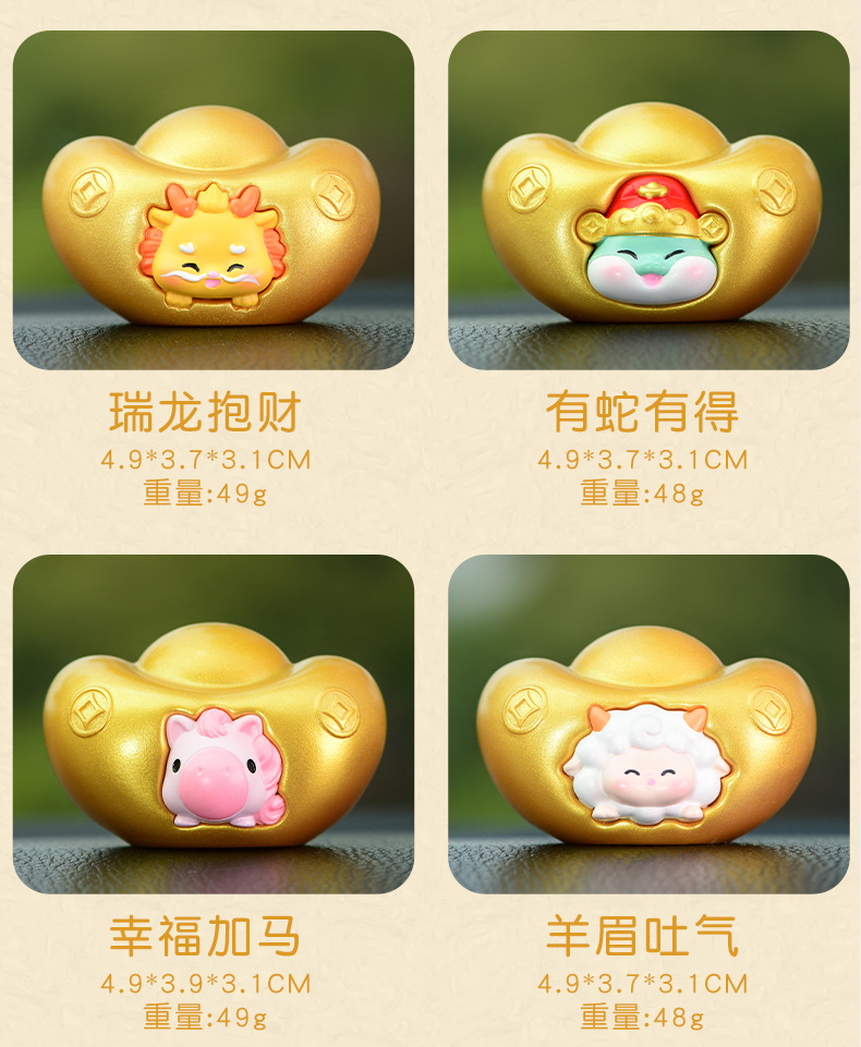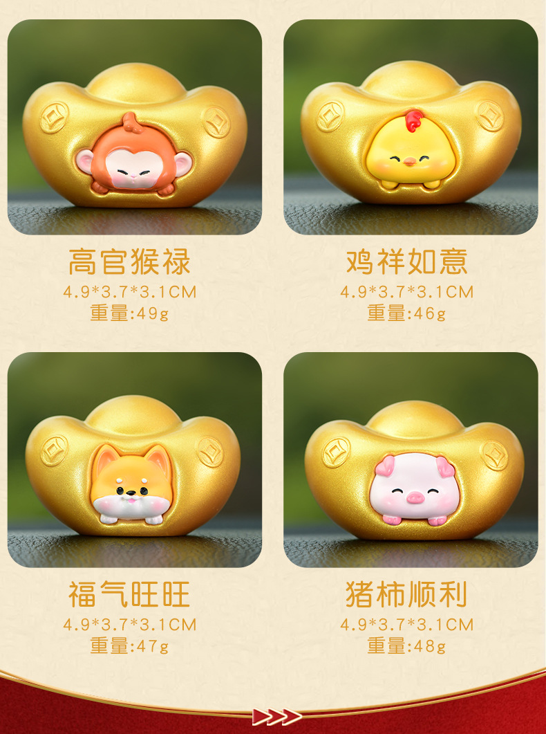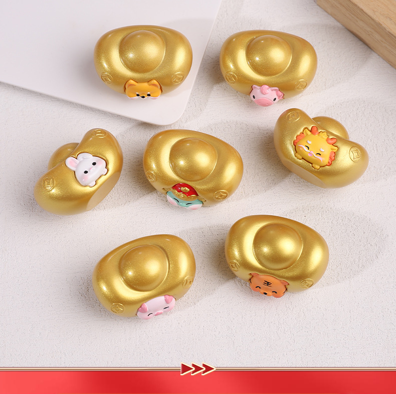 조디악 Yuanbao 자동차 장식품 창조적 인 새해 Q 에디션 골드 Yuanbao 자동차 장식 자동차 액세서리 센터 콘솔