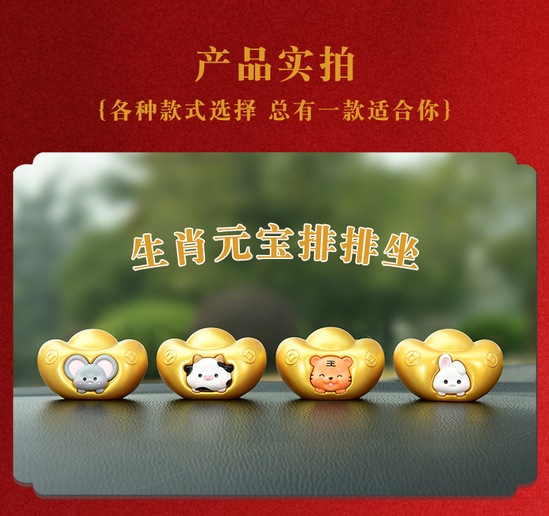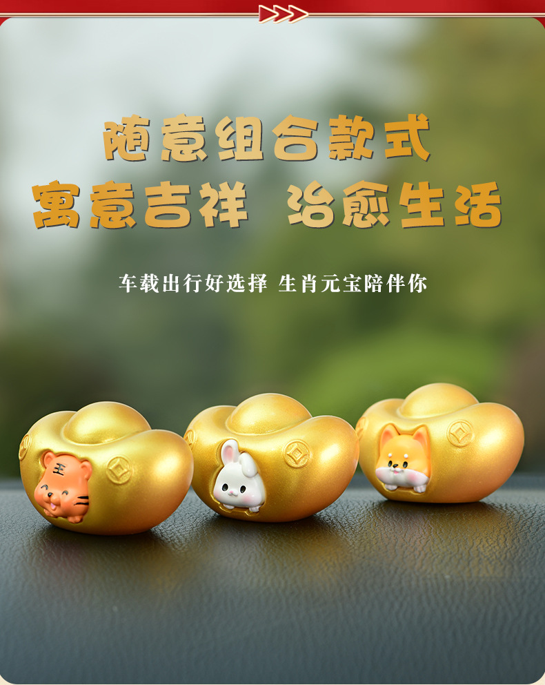 조디악 Yuanbao 자동차 장식품 창조적 인 새해 Q 에디션 골드 Yuanbao 자동차 장식 자동차 액세서리 센터 콘솔스토어 가기