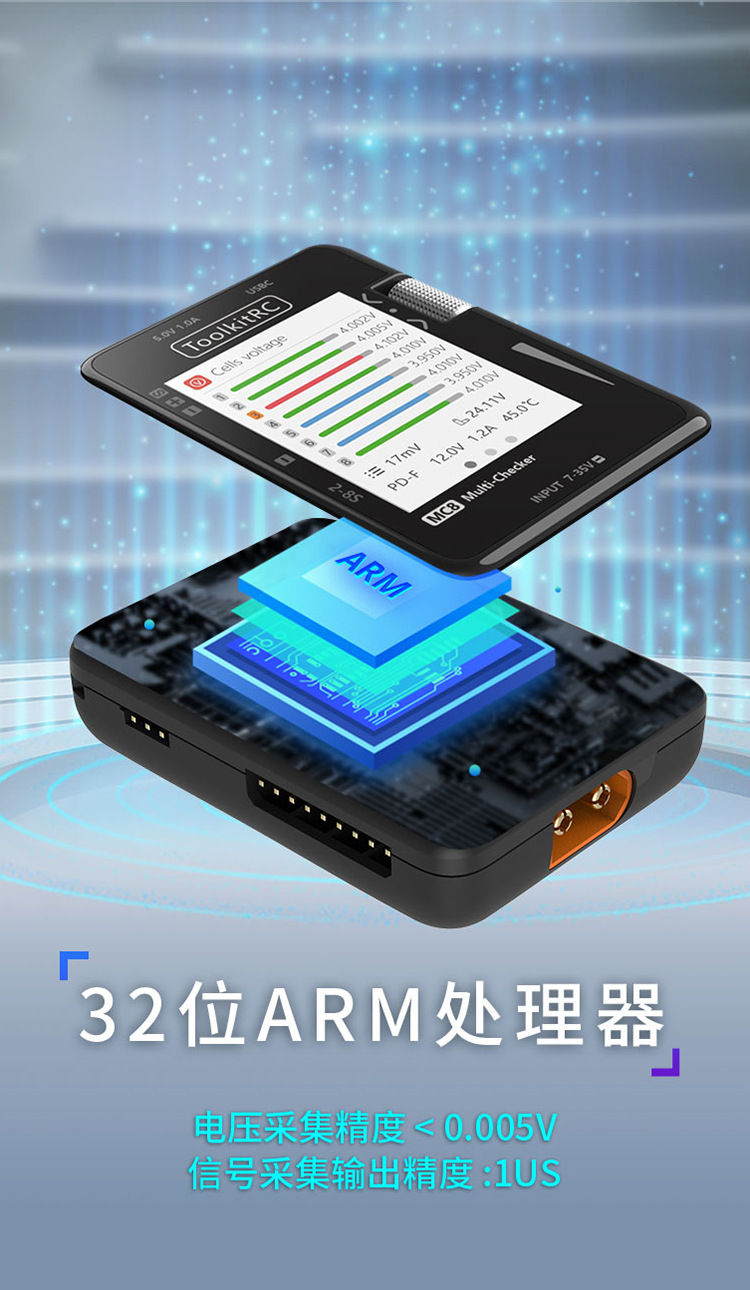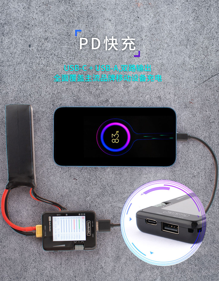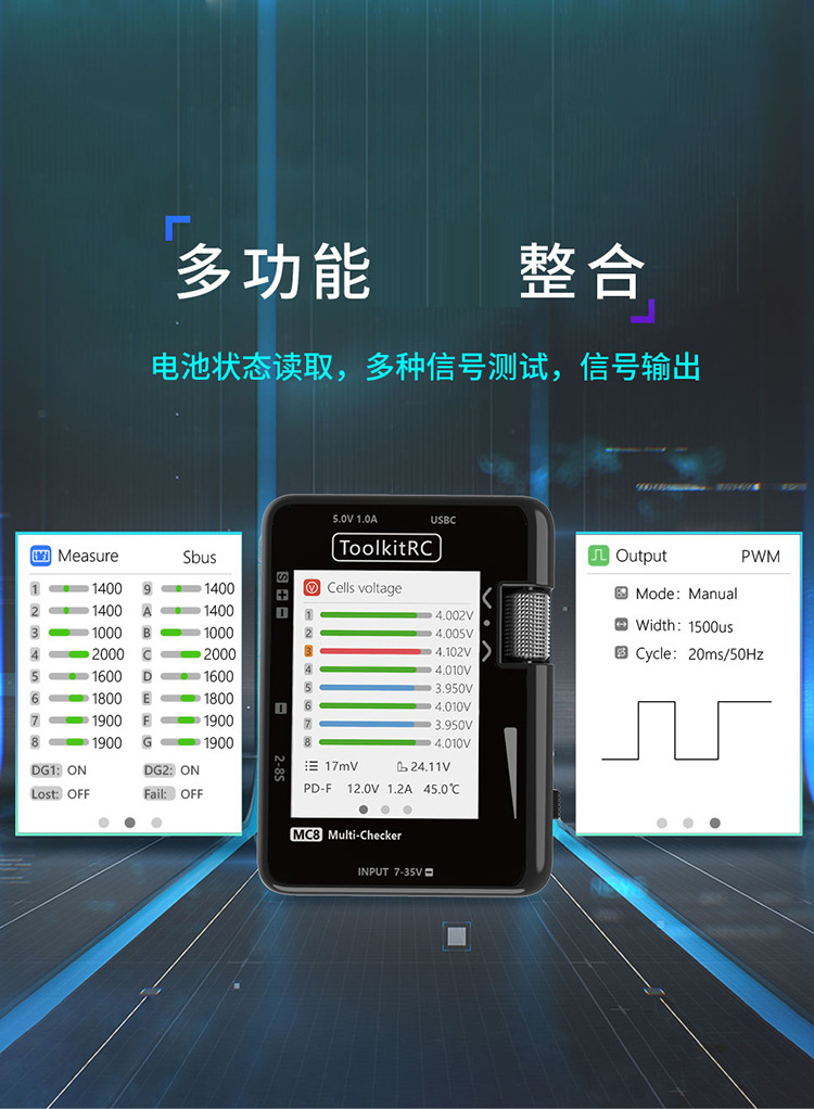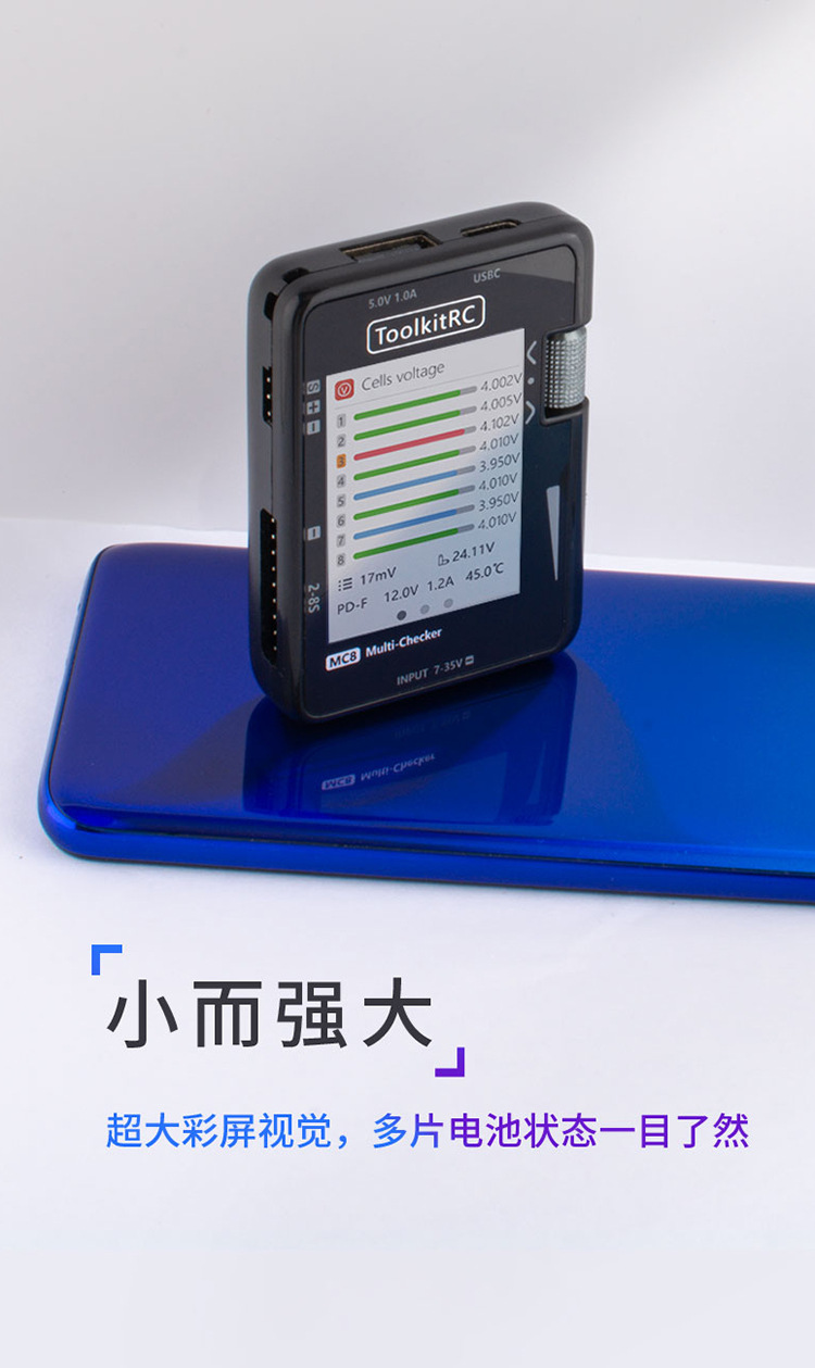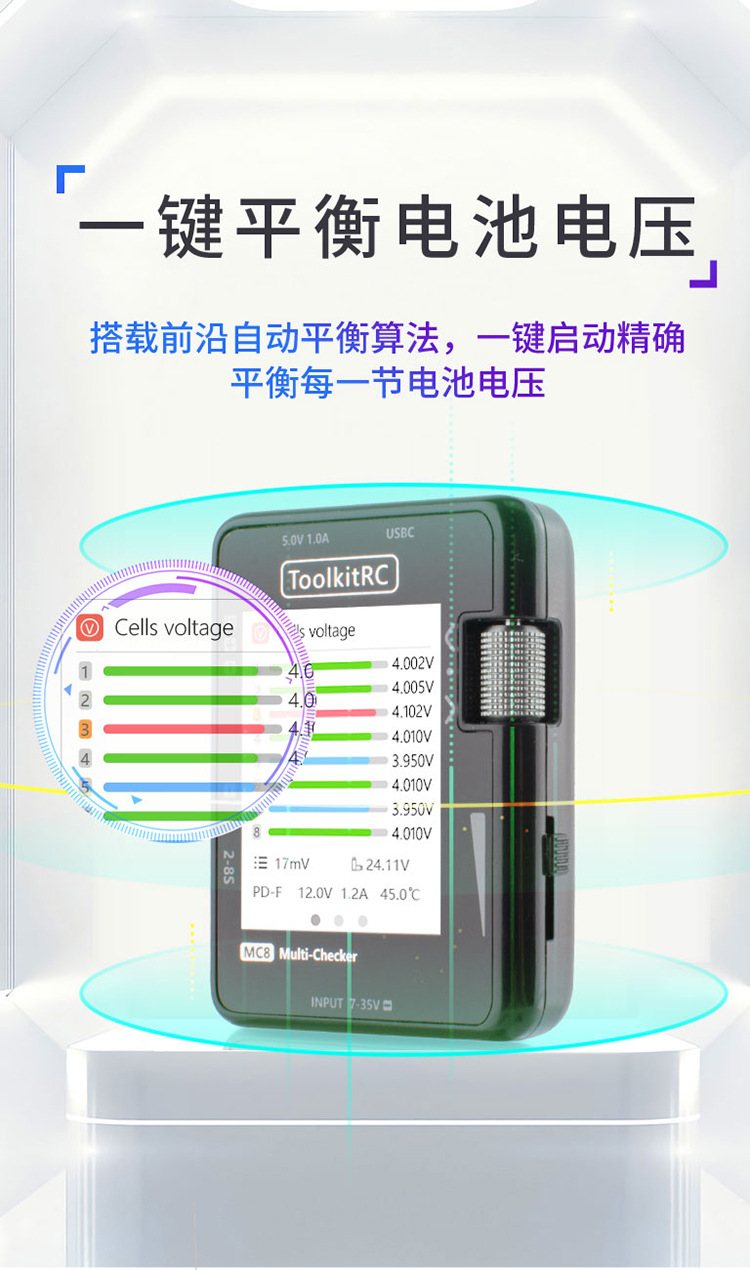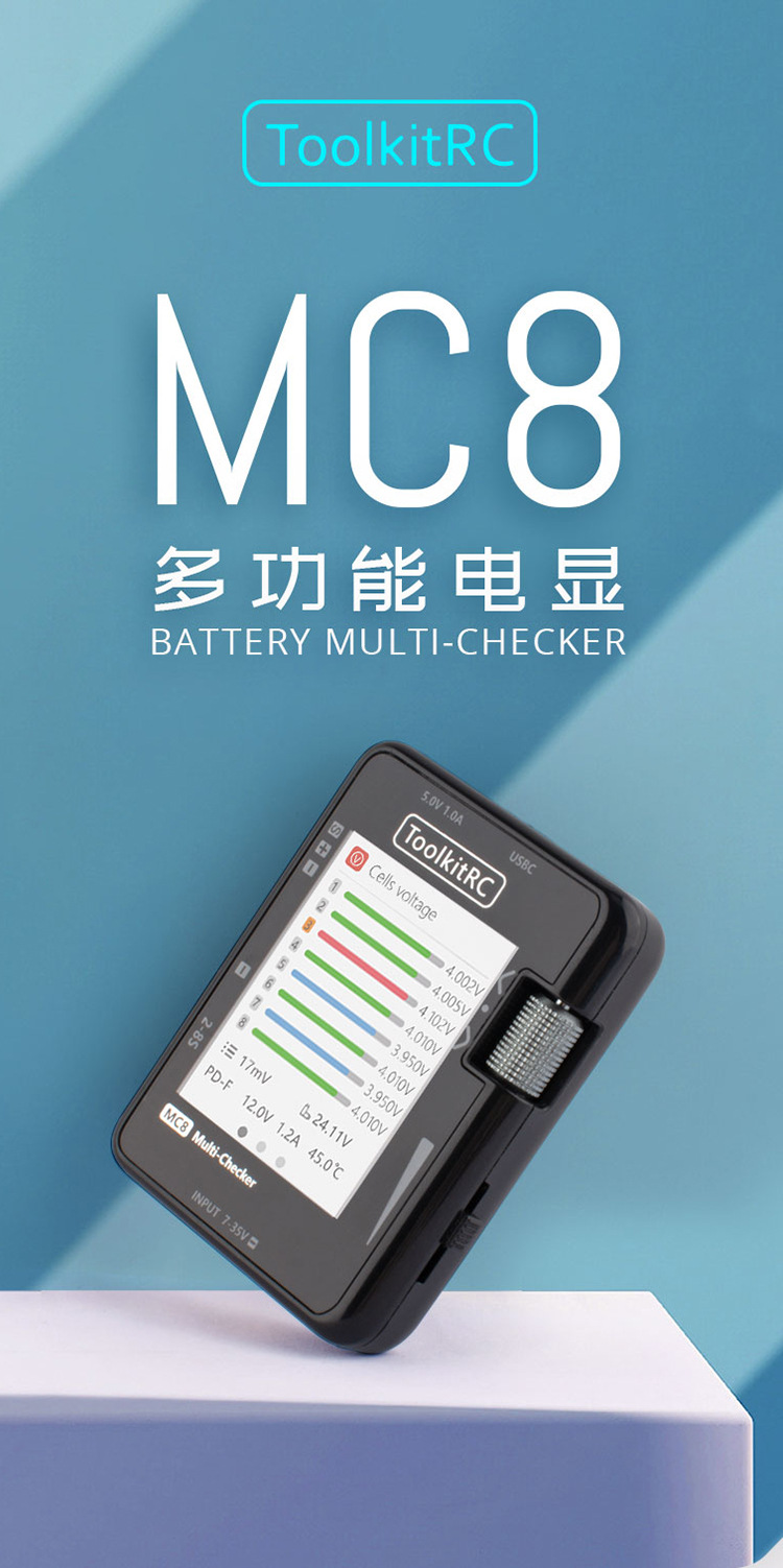 ToolkitRC MC8 다기능 전기 디스플레이 균형 전압 측정 배터리 상태 신호 PD 충전기