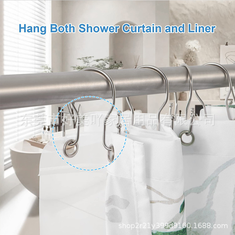 아마존 베스트셀러 비드 없는 철제 이중 후크 샤워 커튼 후크 커튼 후크 욕실용품 샤워 커튼 이중 후크스토어 가기