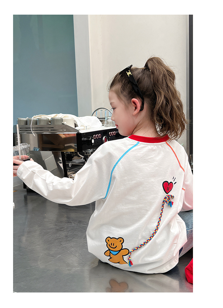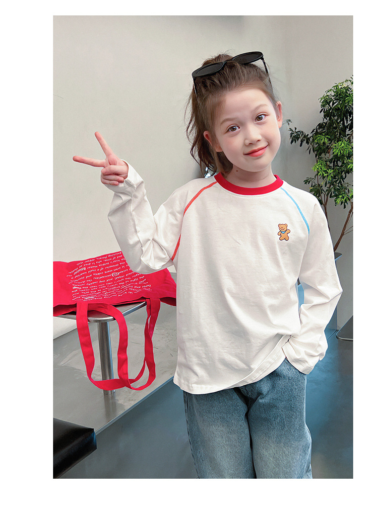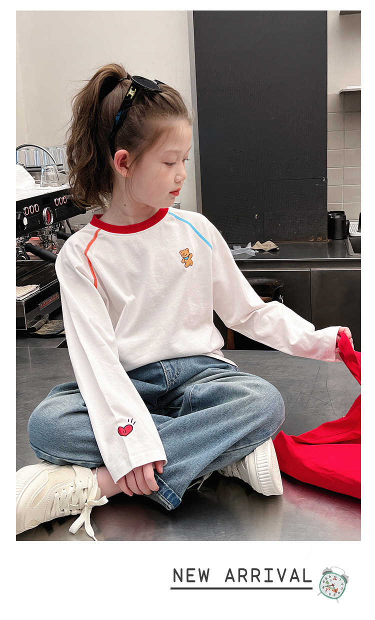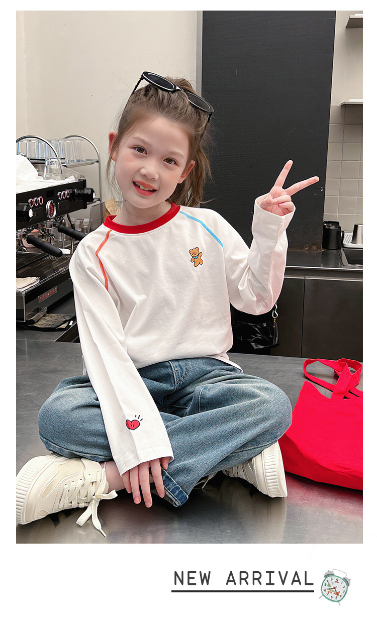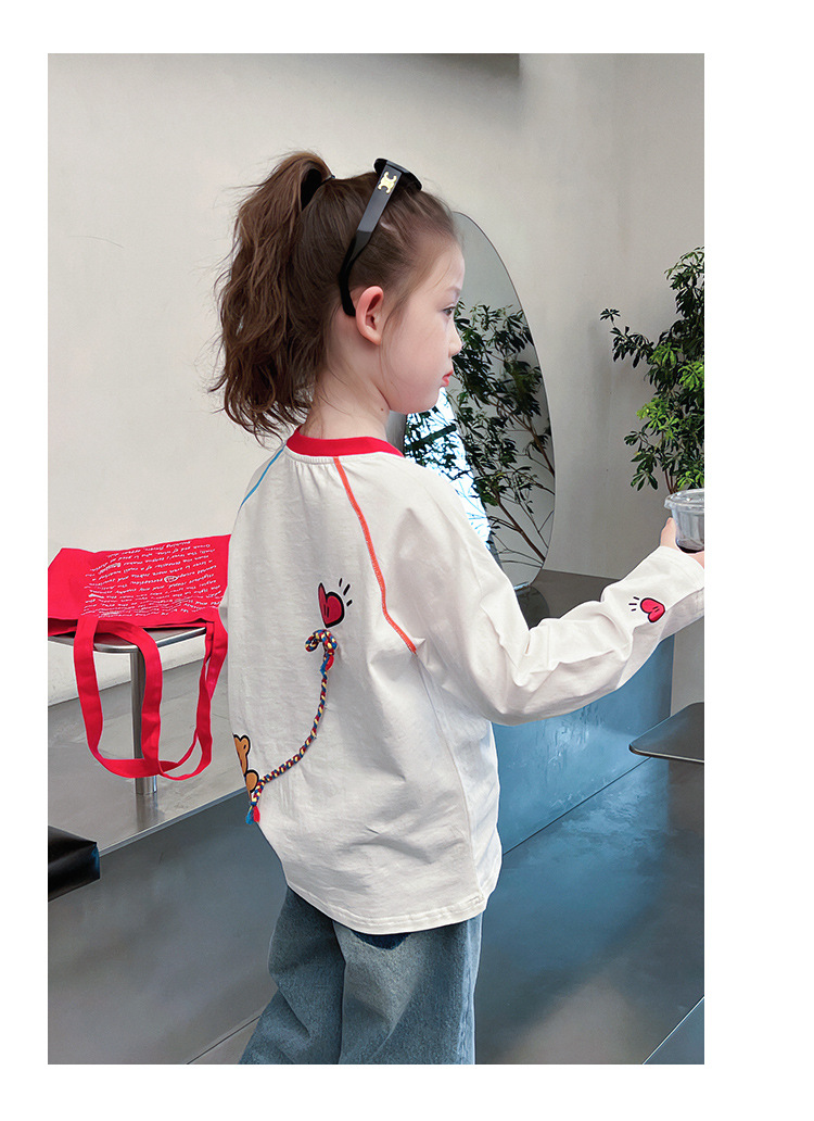 퓨어 코튼 어린이 사이버 연예인 명암 흰색 티셔츠 소녀 서양식 베이스 셔츠 큰 아동복 긴 소매 2025 봄 새로운 스타일