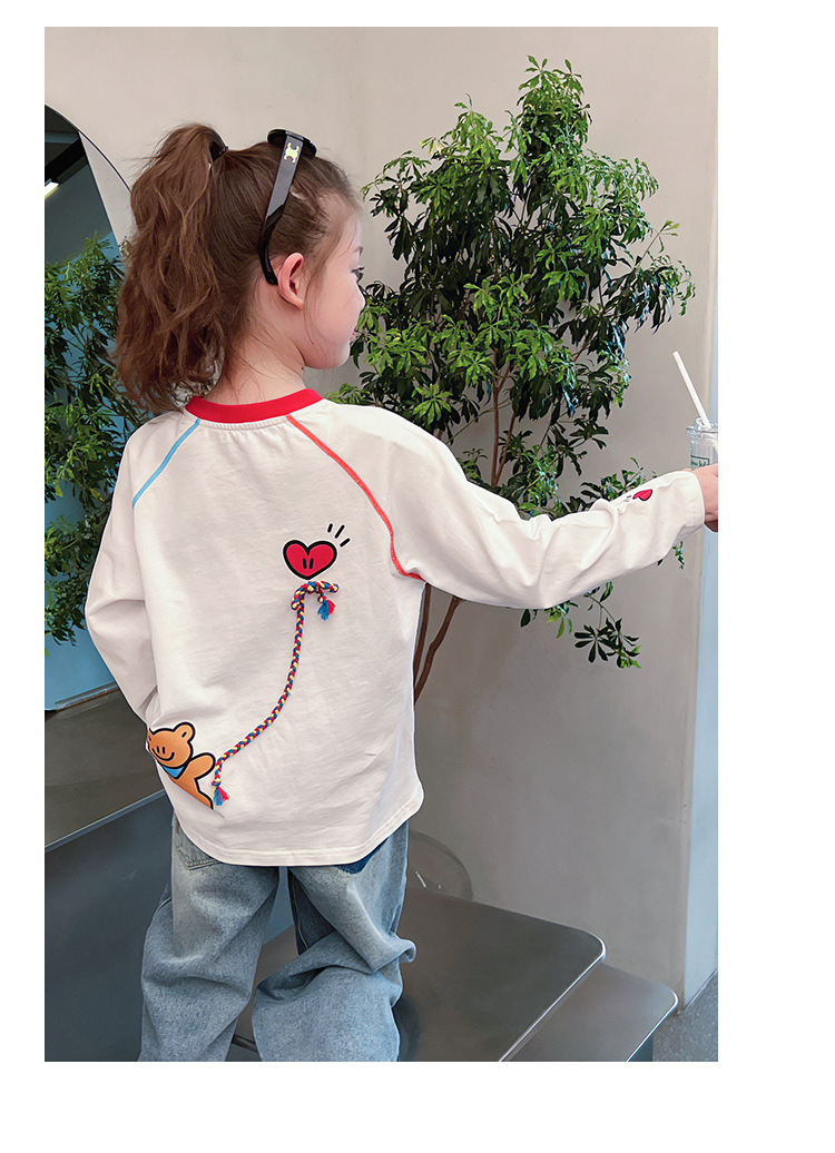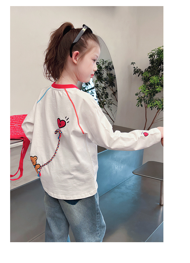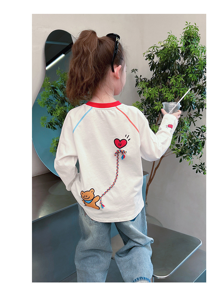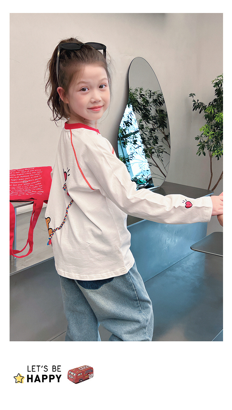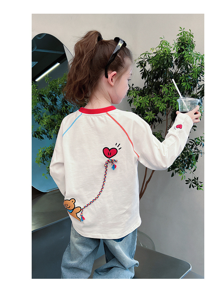 퓨어 코튼 어린이 사이버 연예인 명암 흰색 티셔츠 소녀 서양식 베이스 셔츠 큰 아동복 긴 소매 2025 봄 새로운 스타일