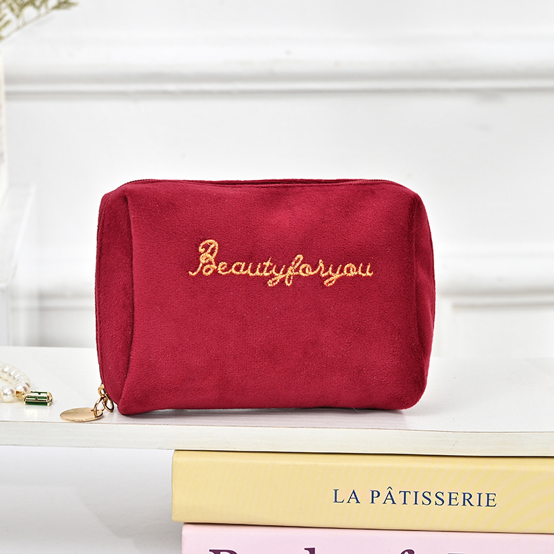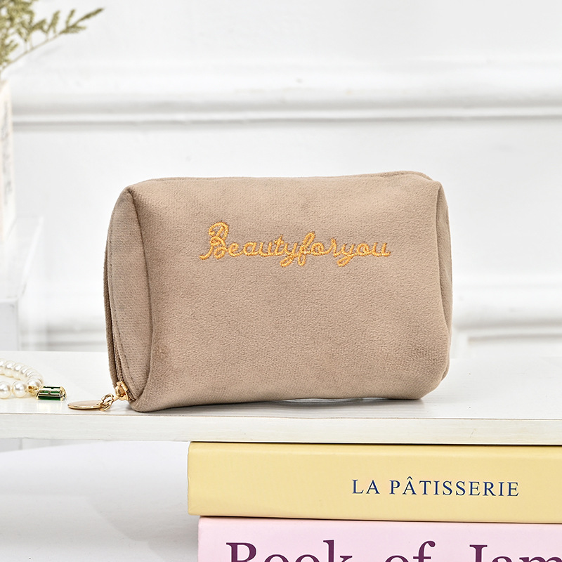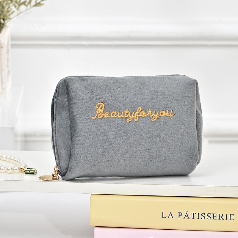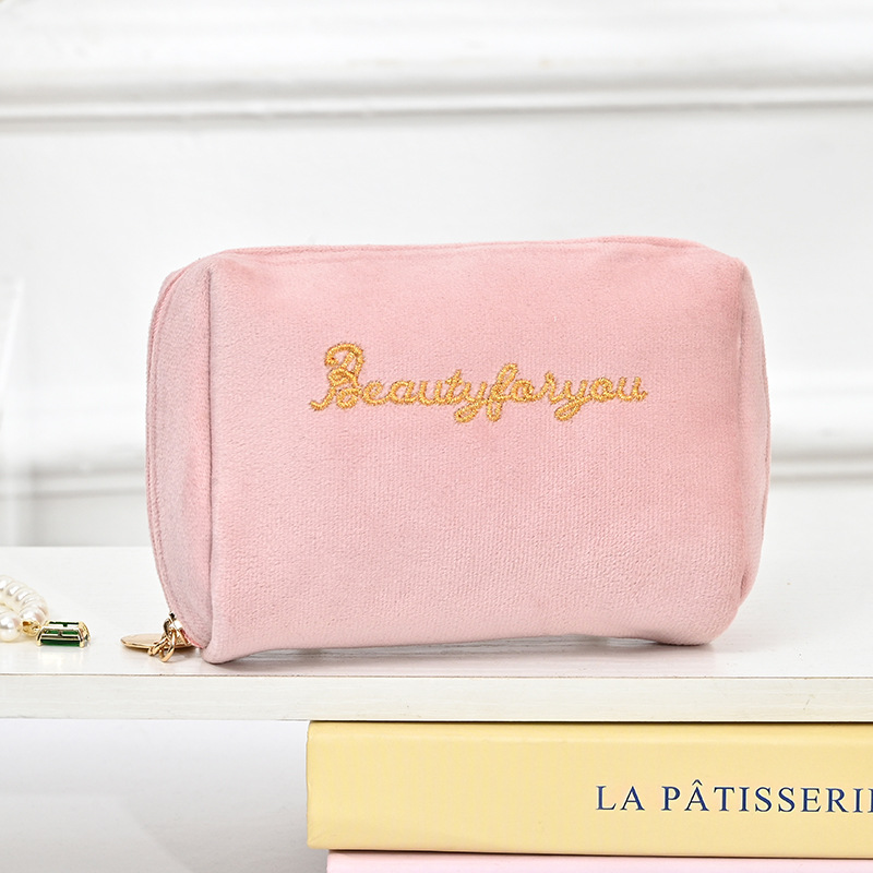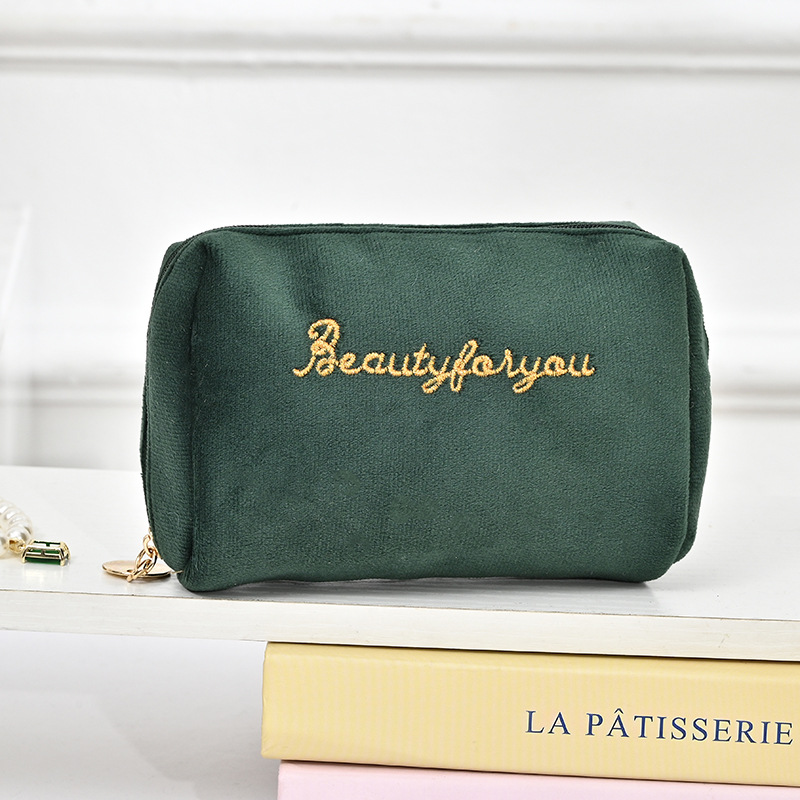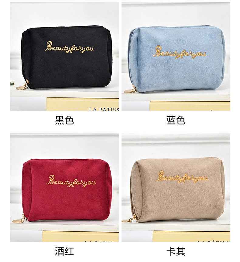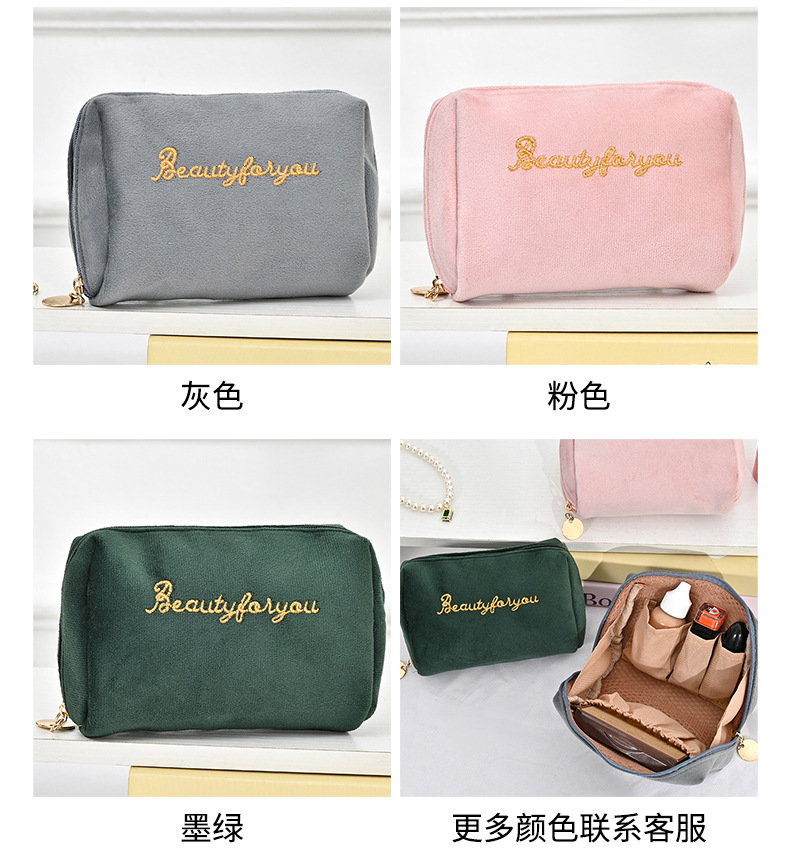 빈티지 대용량 화장품 여성용 스퀘어 솔리드 컬러 보관 가방 플란넬 자수 화장실 가방 지퍼 화장품 가방