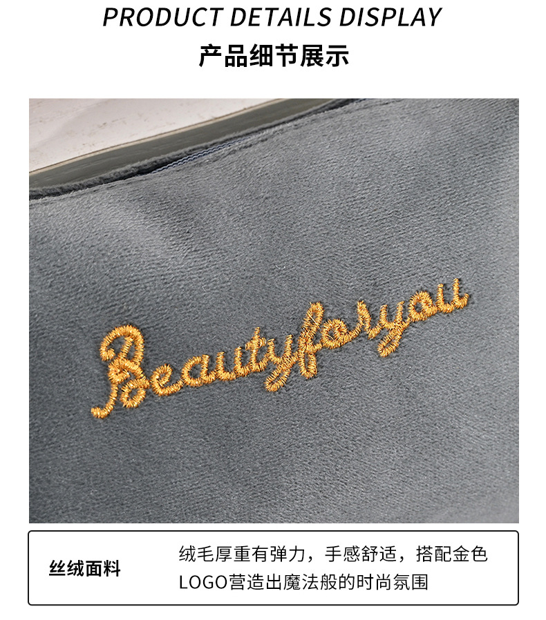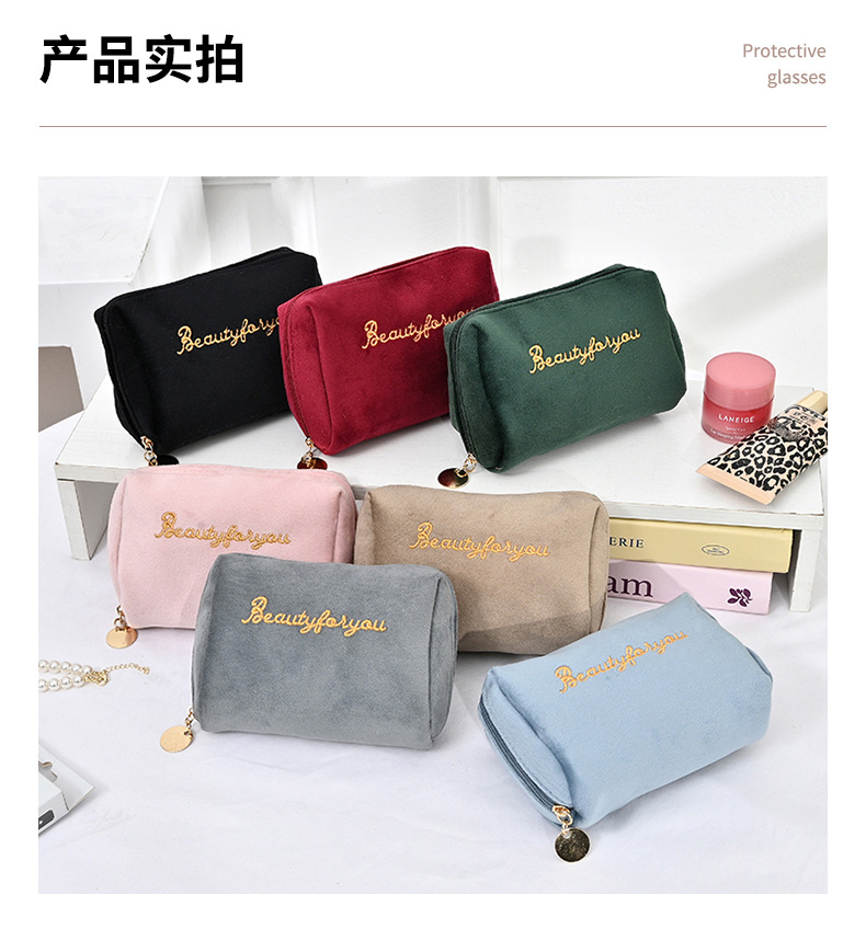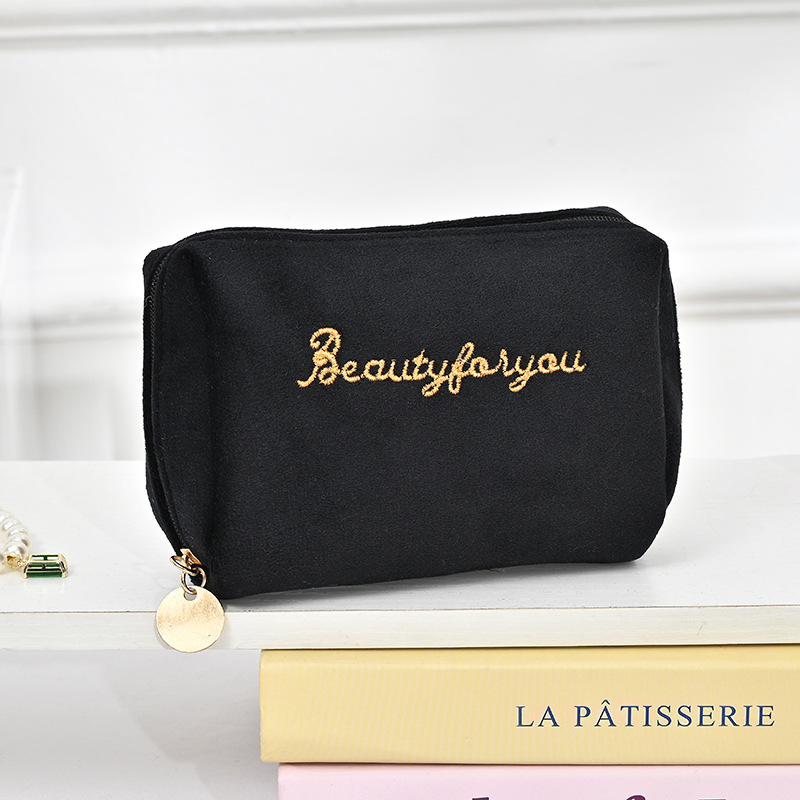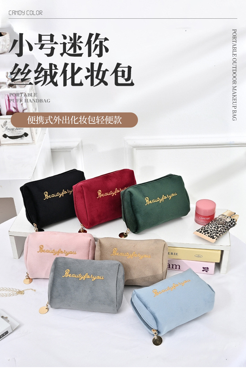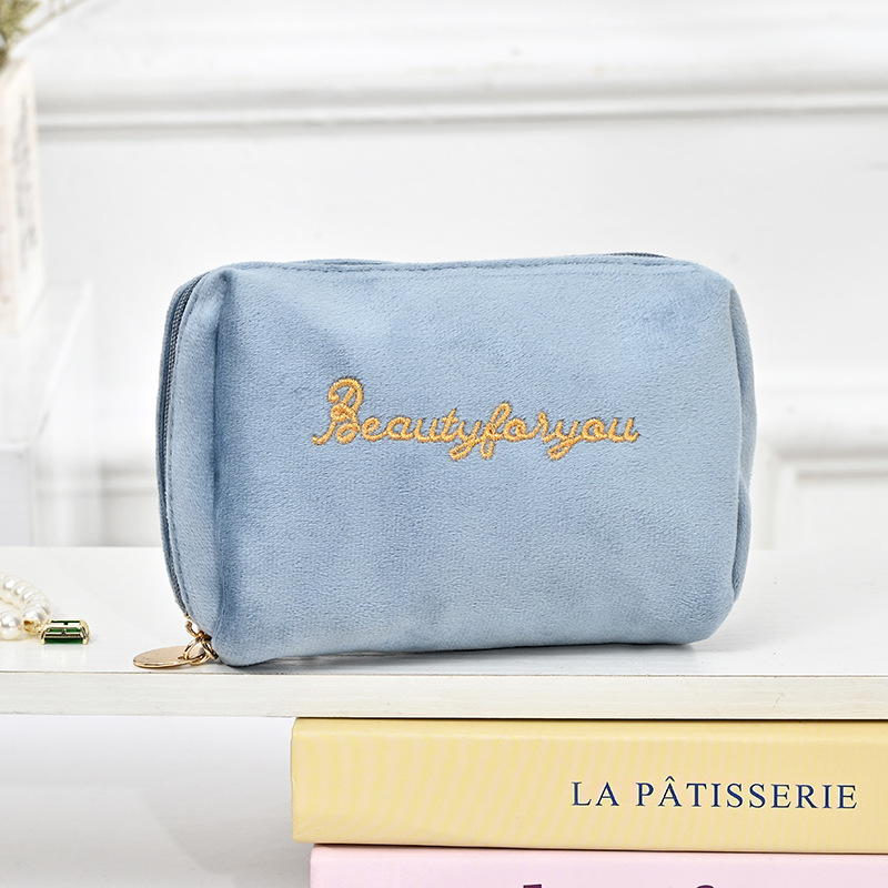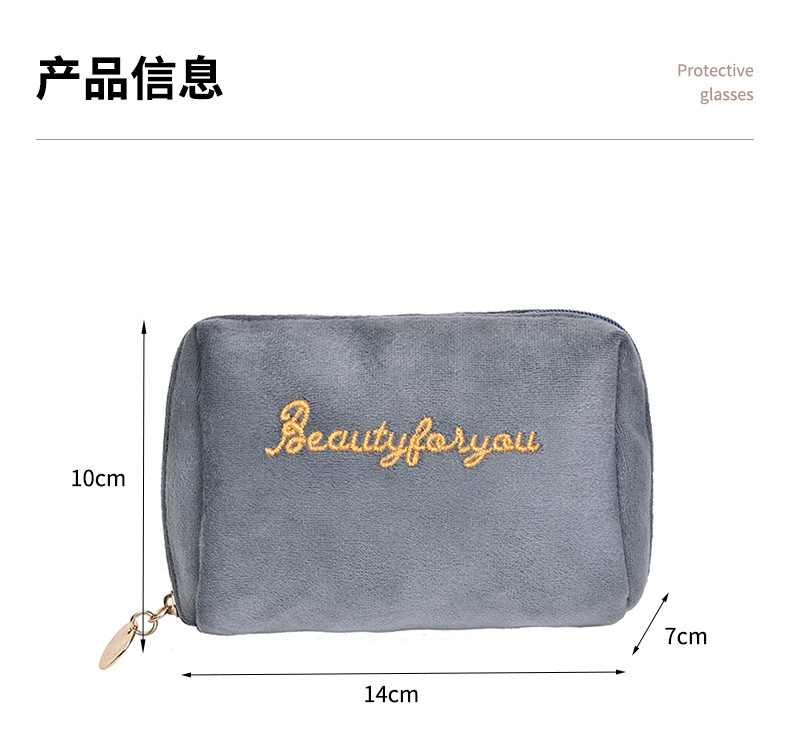 빈티지 대용량 화장품 여성용 스퀘어 솔리드 컬러 보관 가방 플란넬 자수 화장실 가방 지퍼 화장품 가방