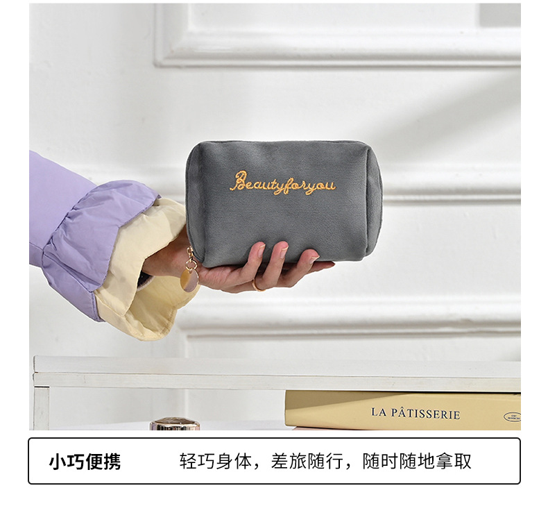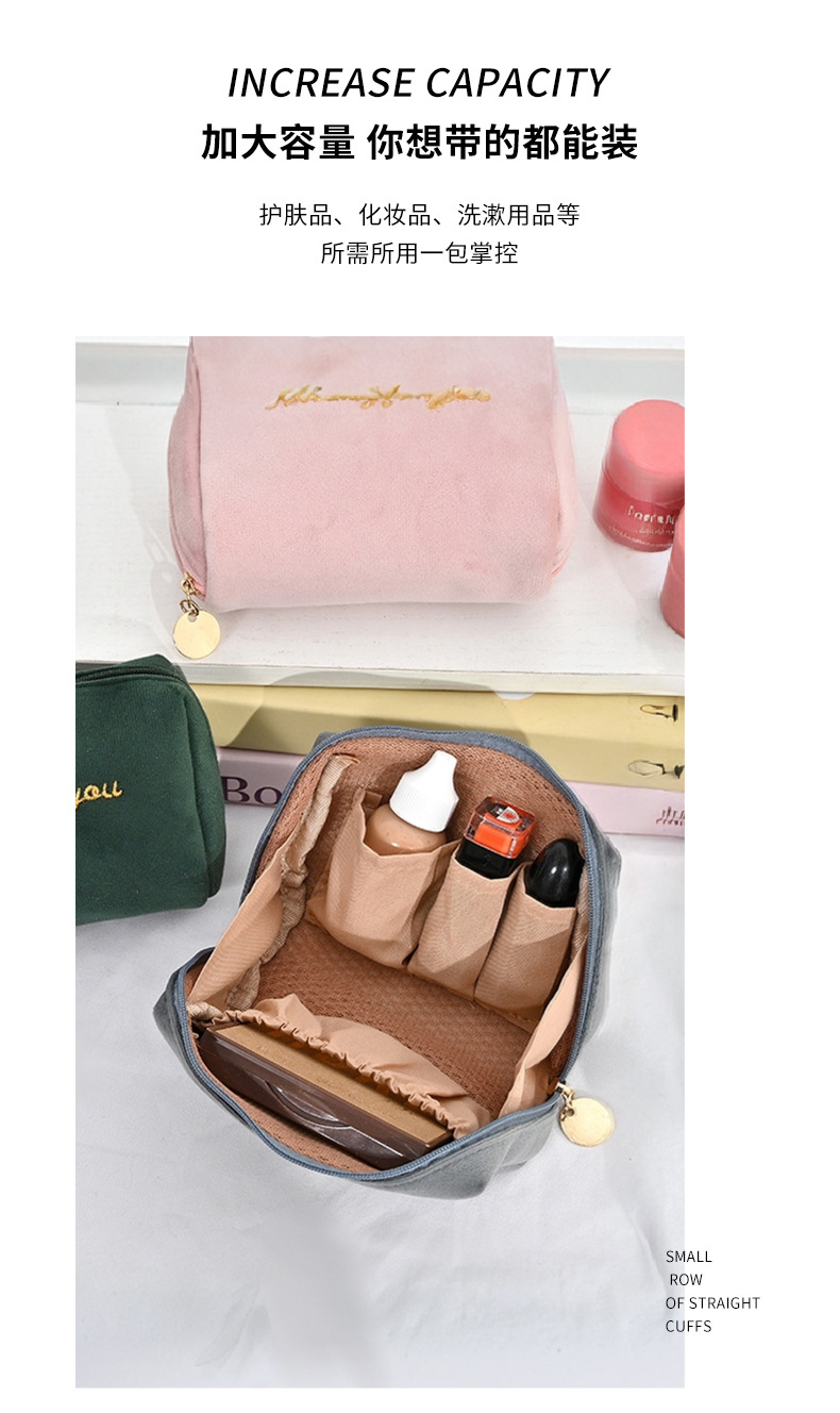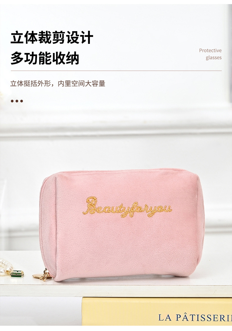 빈티지 대용량 화장품 여성용 스퀘어 솔리드 컬러 보관 가방 플란넬 자수 화장실 가방 지퍼 화장품 가방스토어 가기
