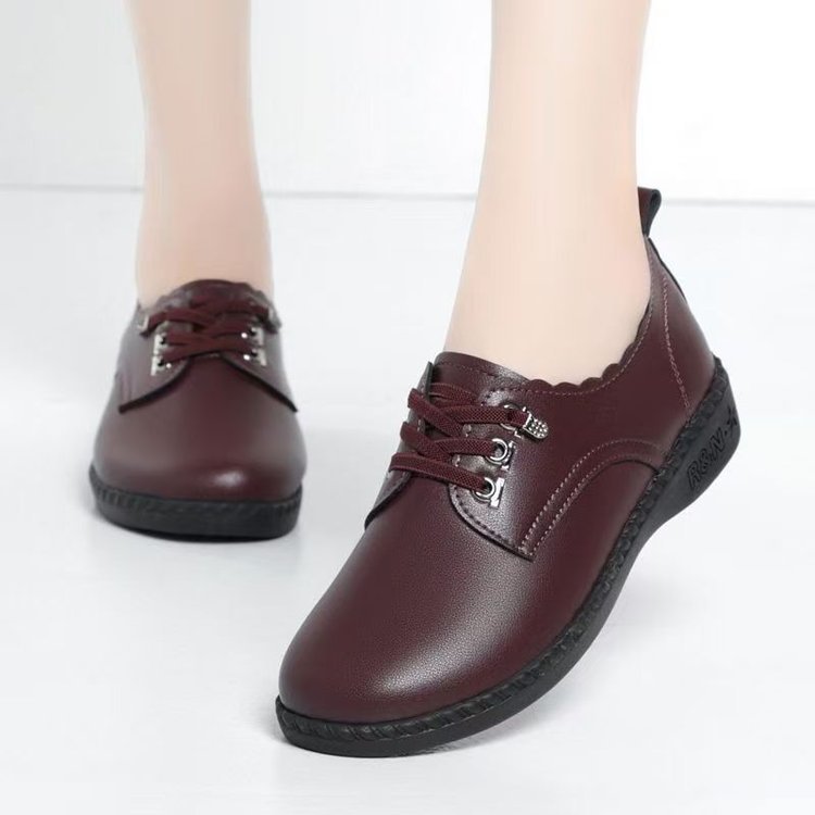 여성 신발 어머니 봄 부드러운 가죽 2025 중년 및 노인을위한 신발 플랫 미끄럼 방지 편안한 여성용 작은 가죽 신발스토어 가기