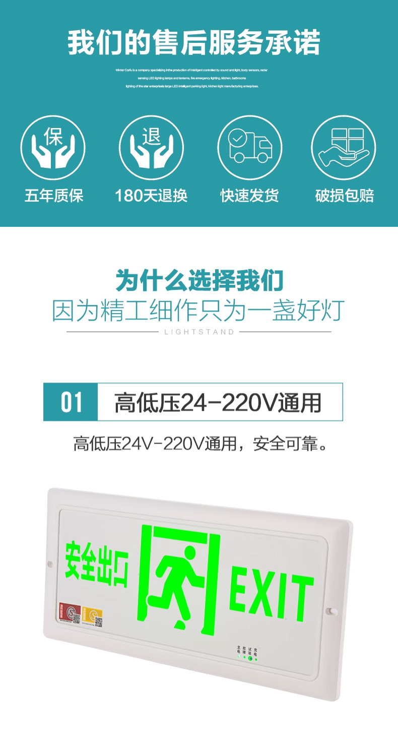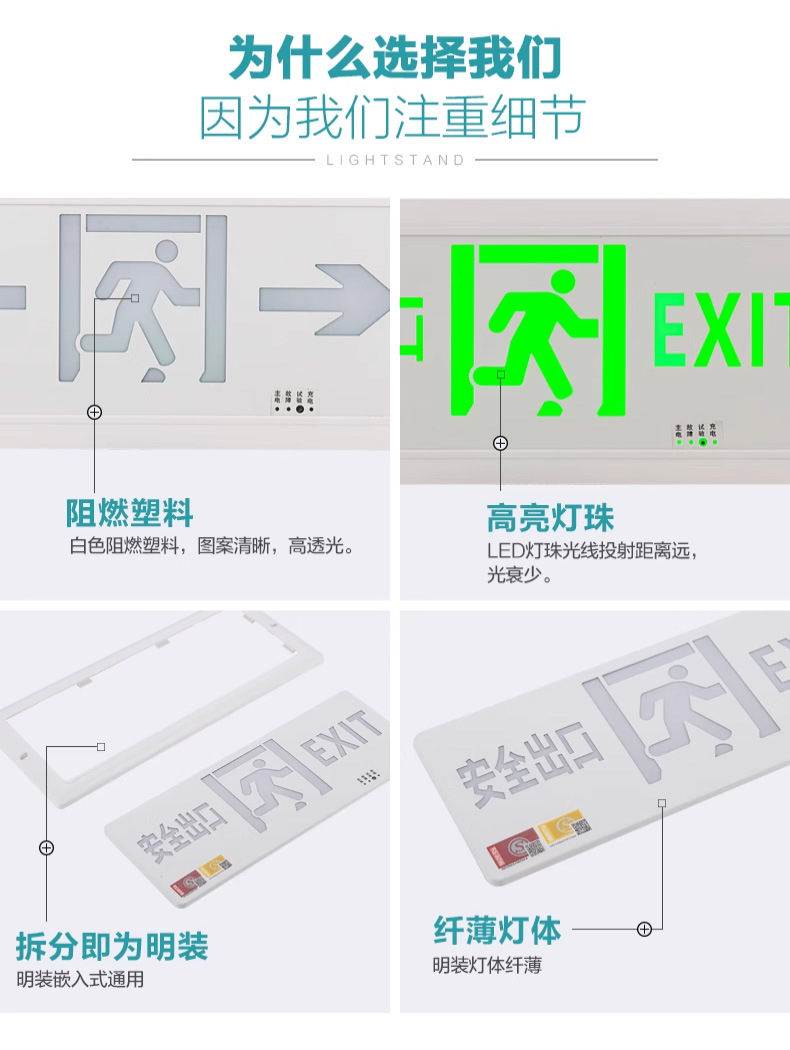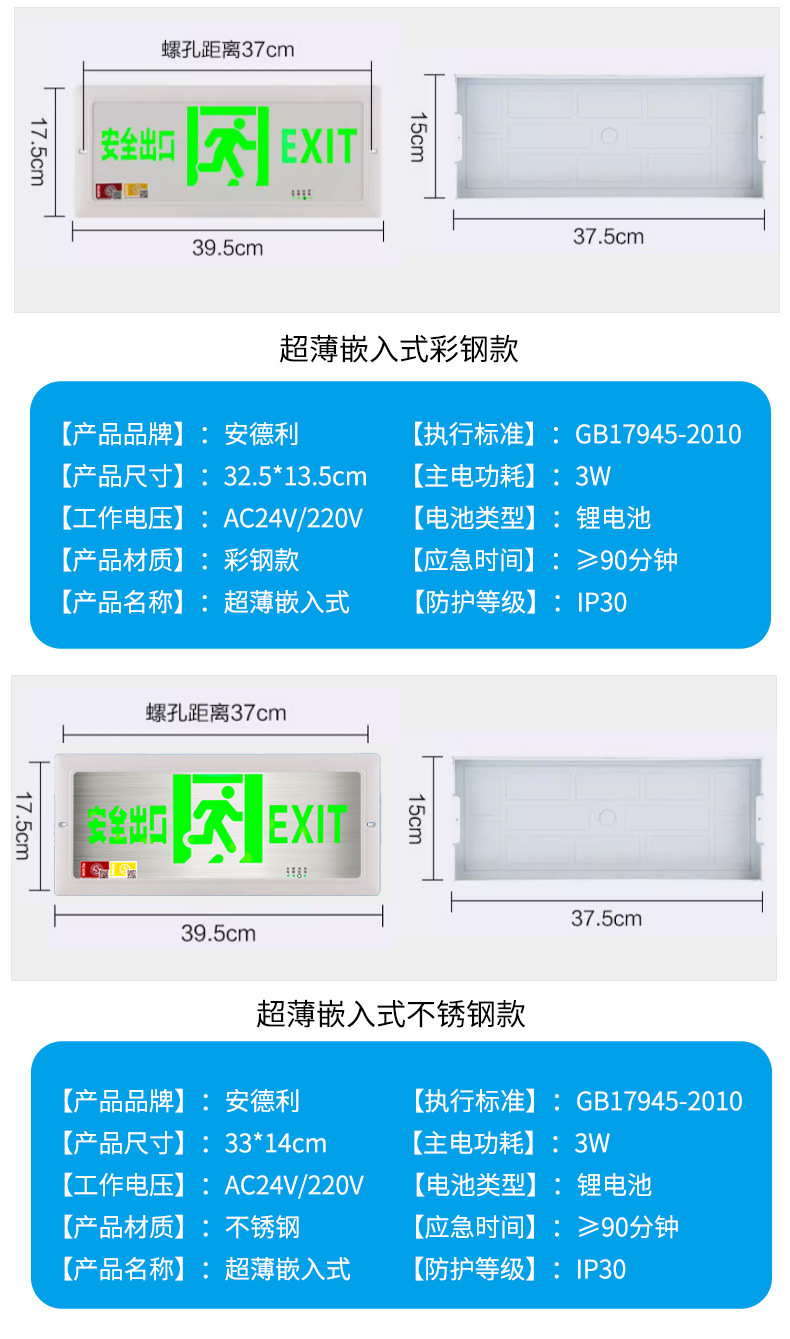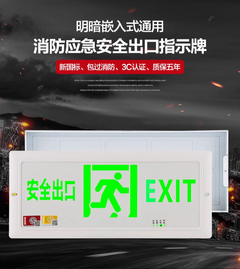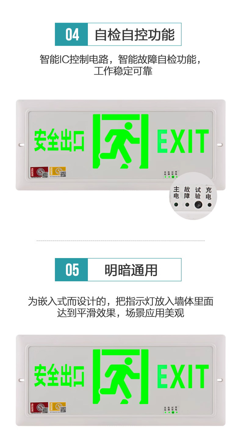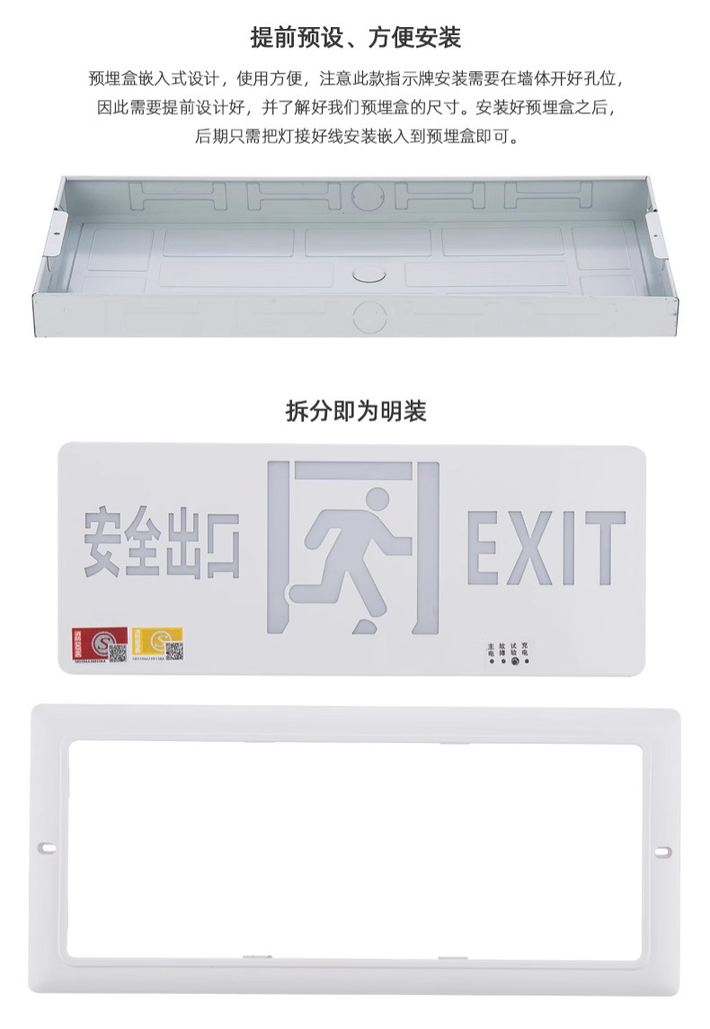 임베디드 스테인레스 스틸 초박형 표시등 대피 비상 탈출 화재 비상 조명 안전 출구 표시 등