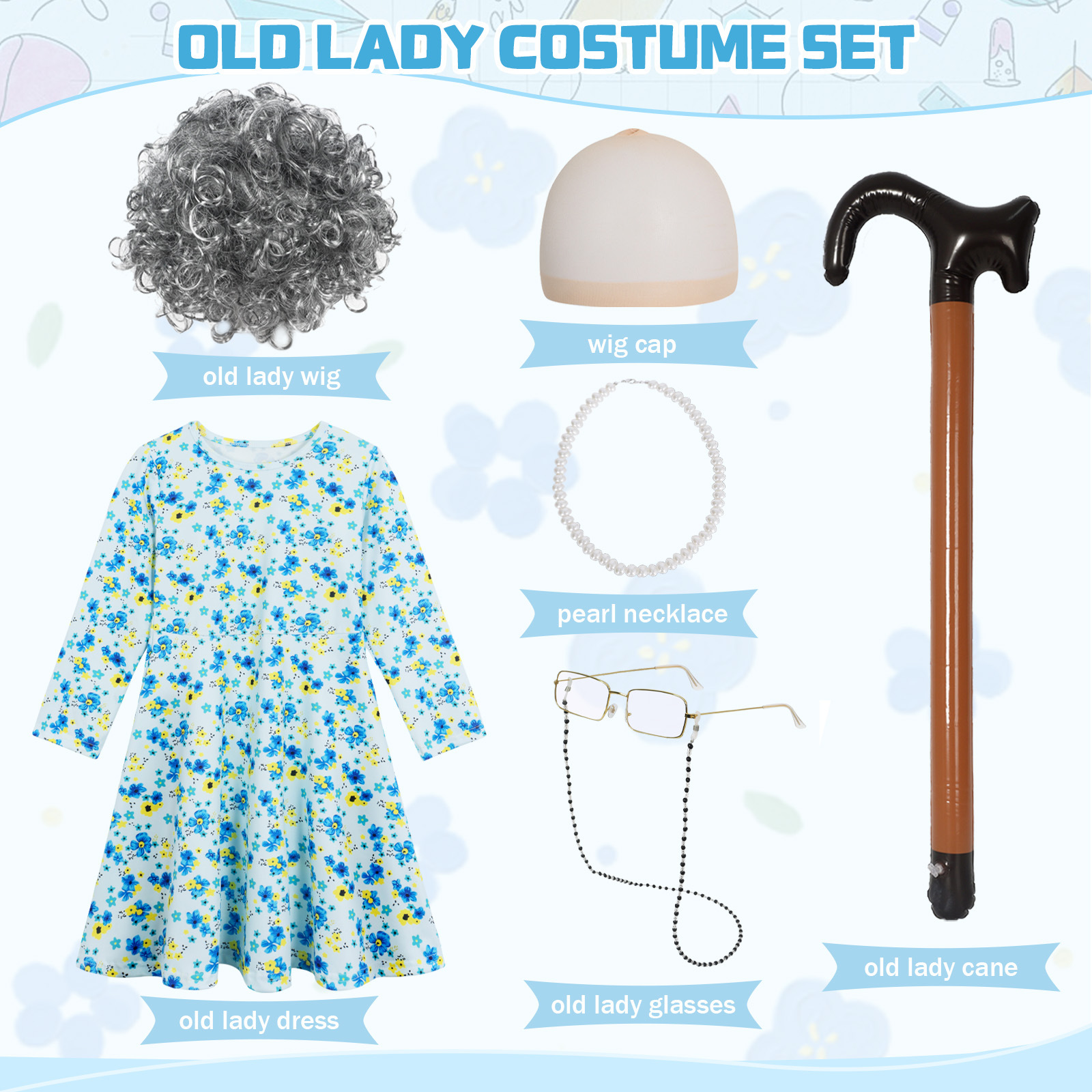 영국 독서의 날 할로윈 가발 할머니 원피스 의상 세트 코스프레 할머니 어린이 치마스토어 가기