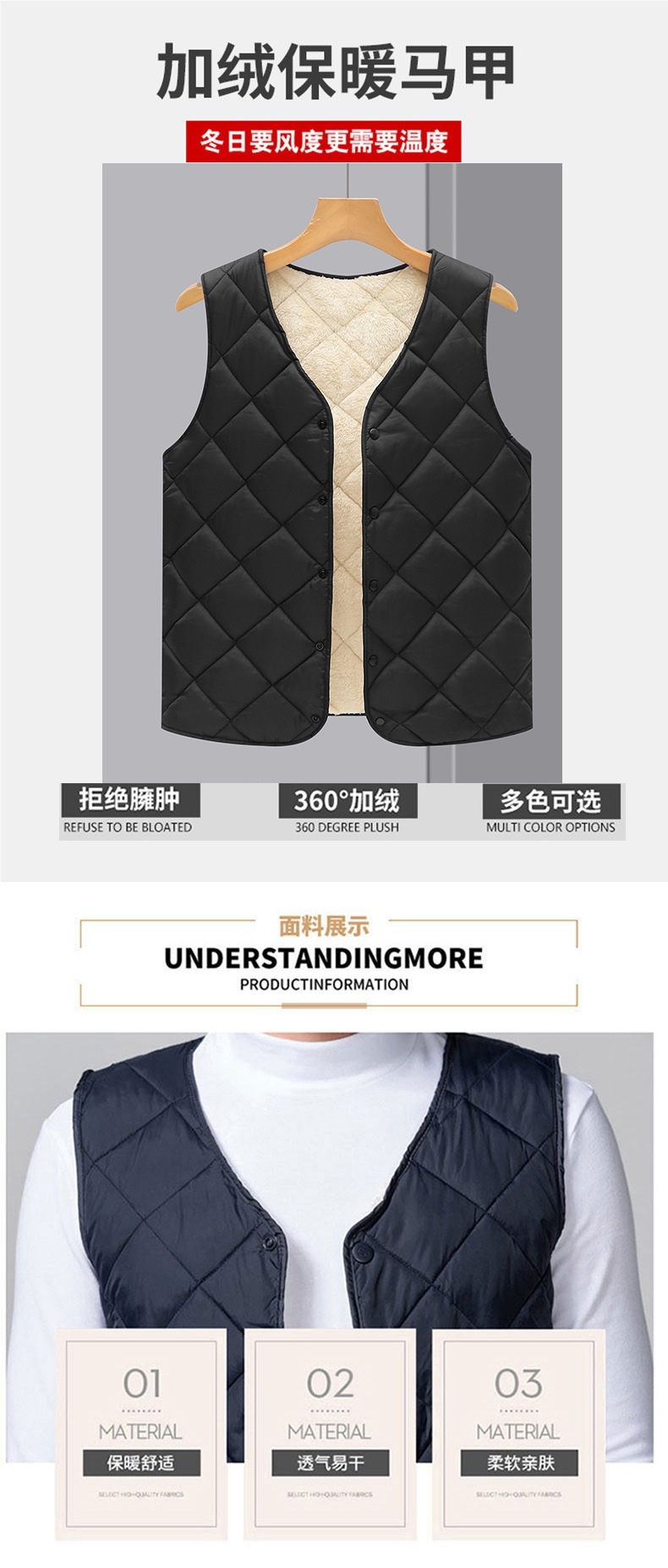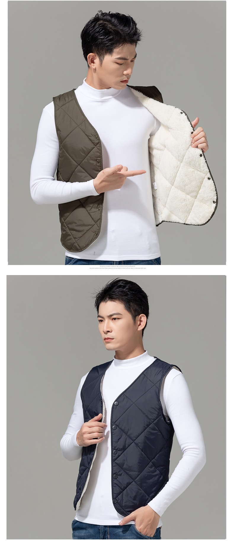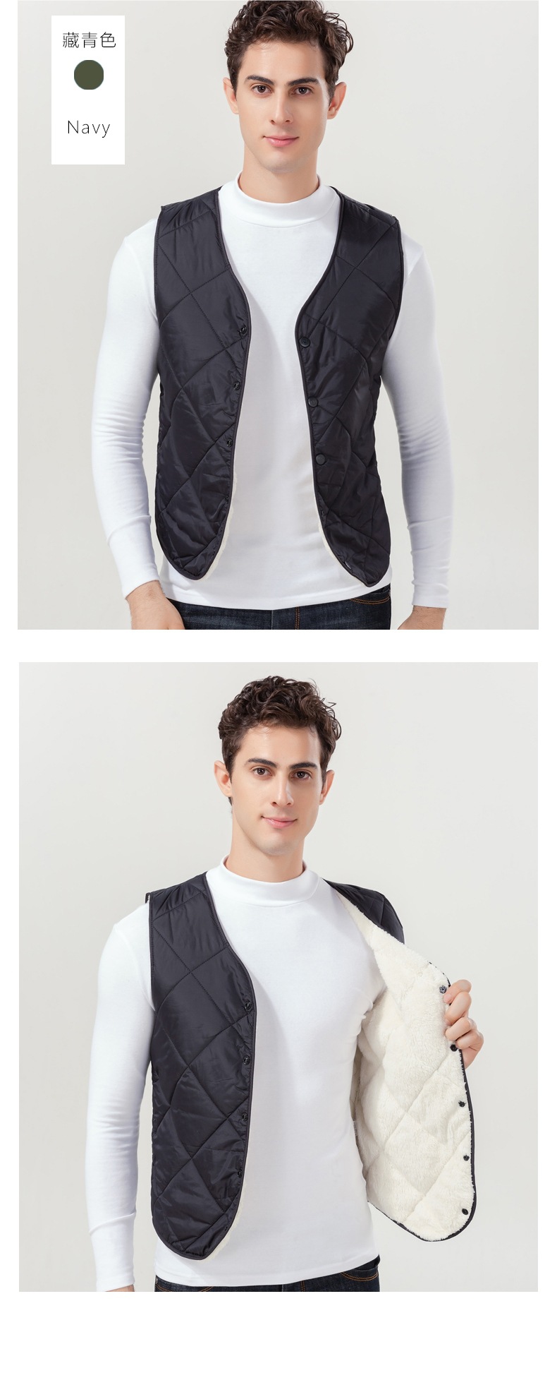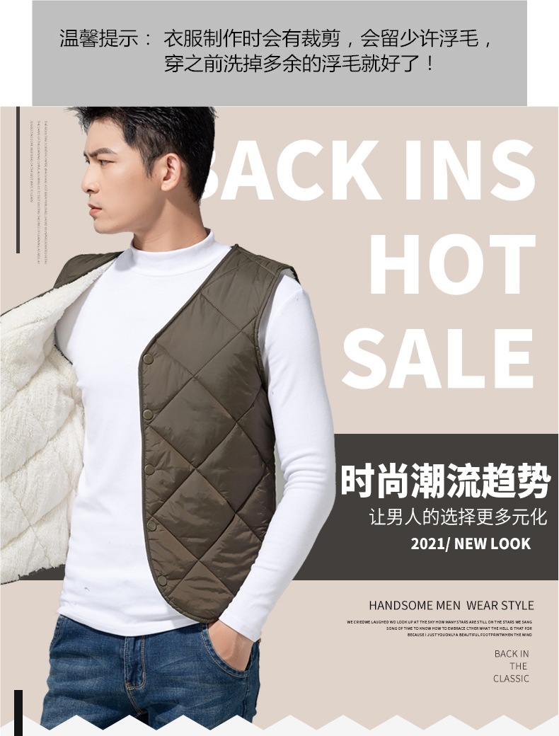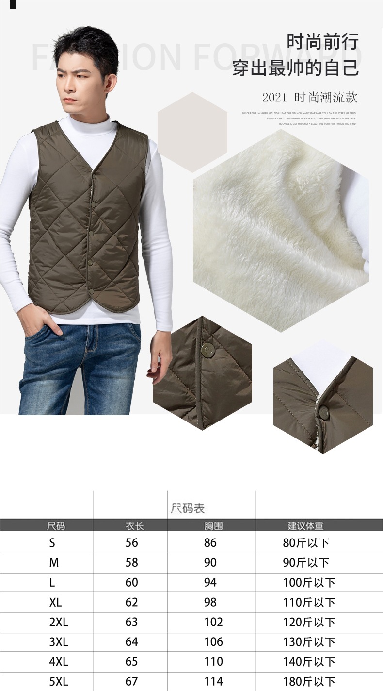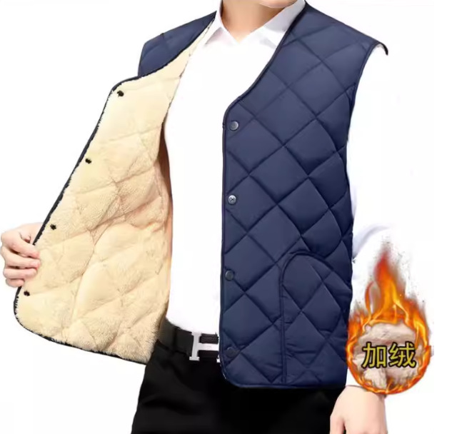 2024 중년 청소년 다운 코튼 조끼 클립 남자 가을과 겨울 기모 경량 따뜻한 조끼 내부 착용스토어 가기