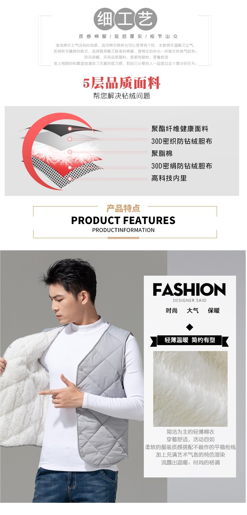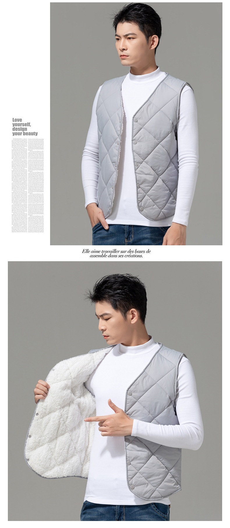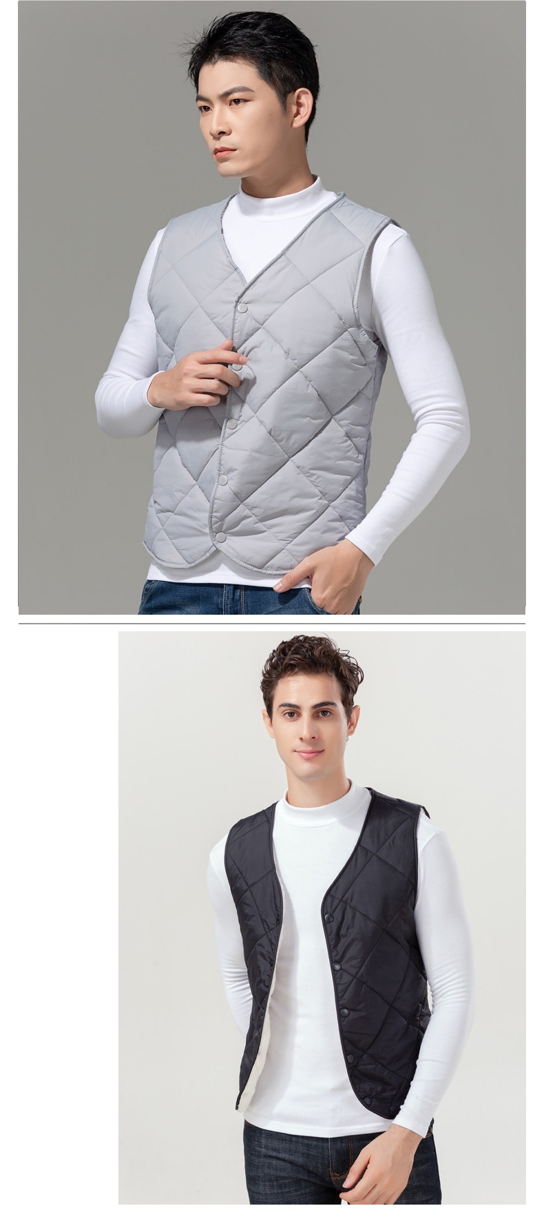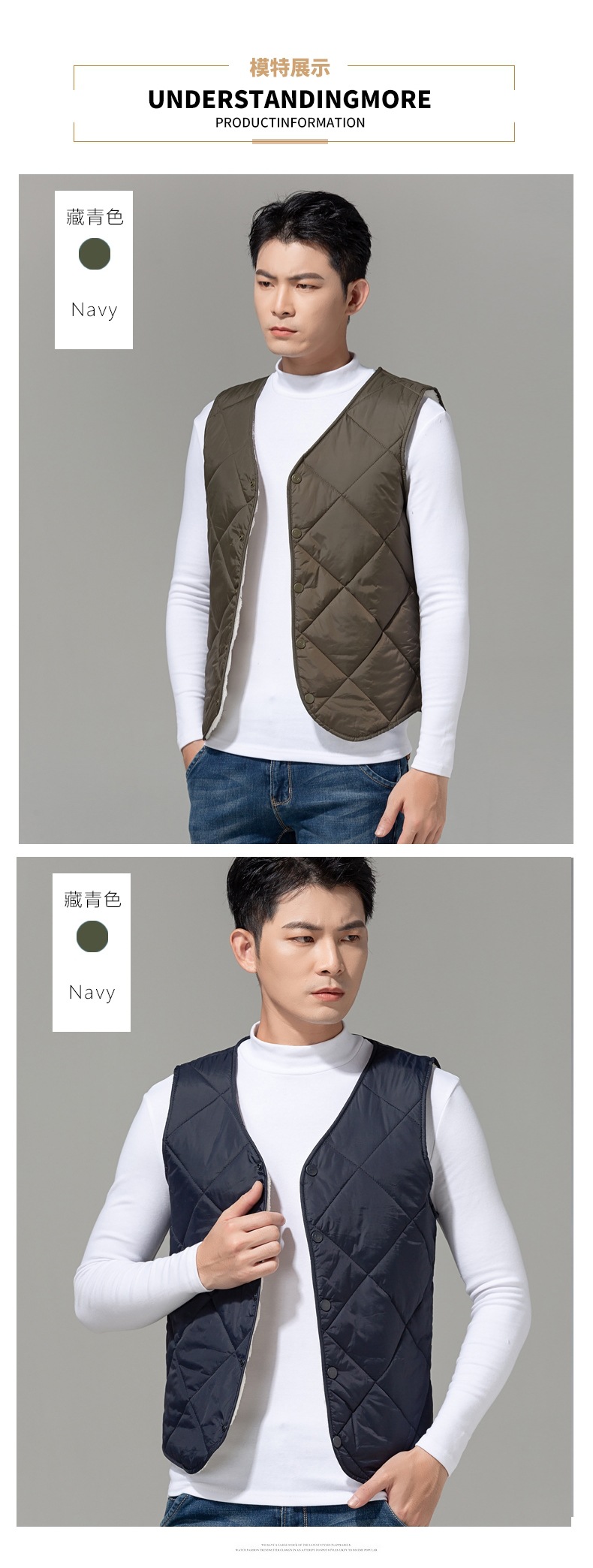 2024 중년 청소년 다운 코튼 조끼 클립 남자 가을과 겨울 기모 경량 따뜻한 조끼 내부 착용스토어 가기