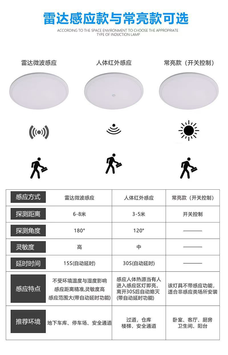 재고 led 레이더 인체 유도 빛 새로운 사람들이 발코니 침실 통로 주방 및 욕실 포털 3 가지 방지 조명