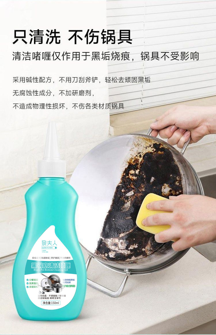 Mrs. Quan Pot 하단 블랙 클리너 강력한 불타는 블랙 스케일 스테인레스 스틸 냄비 먼지 제거 가정용 워시 포트 아티팩트스토어 가기